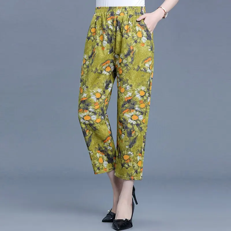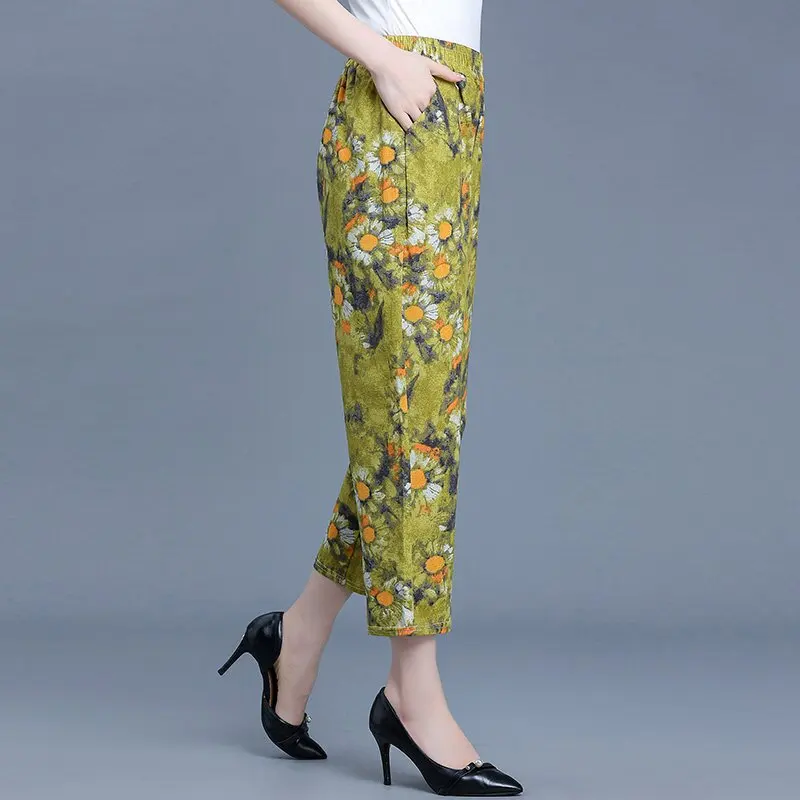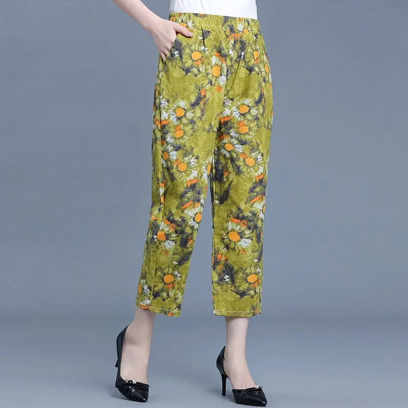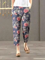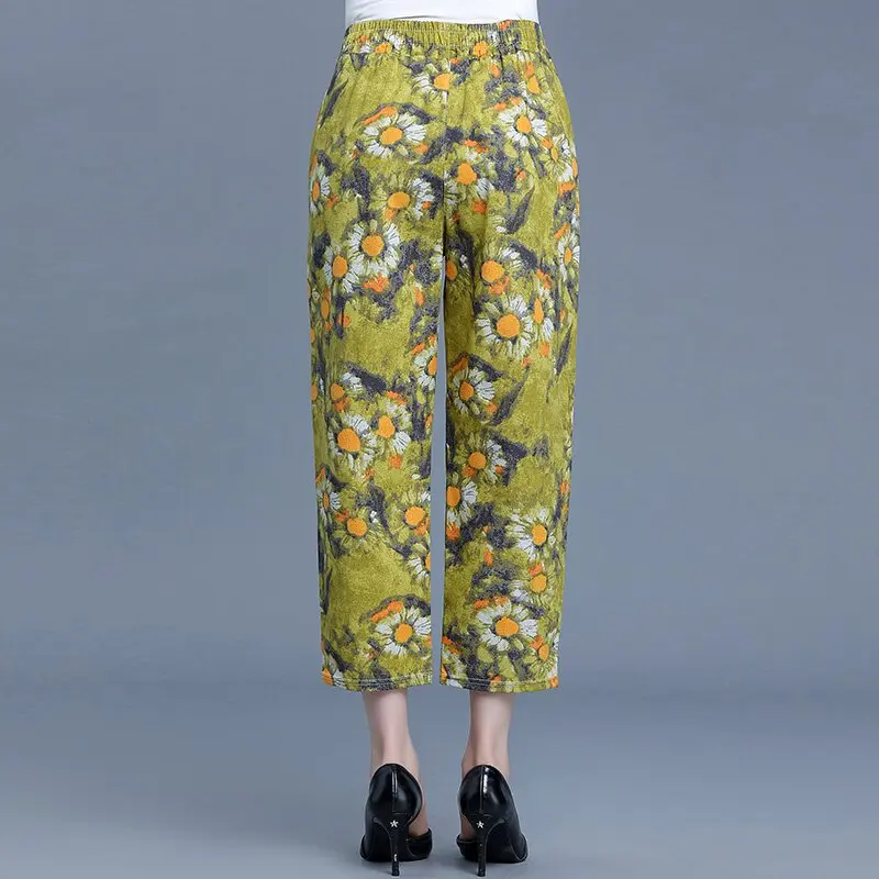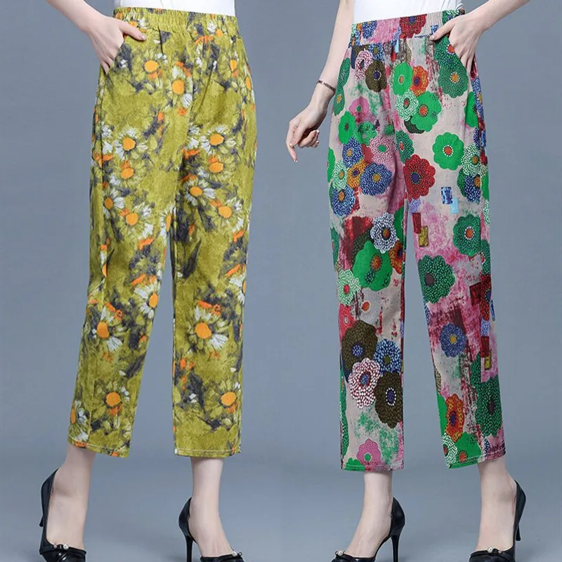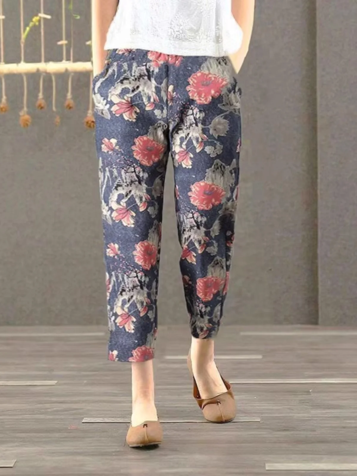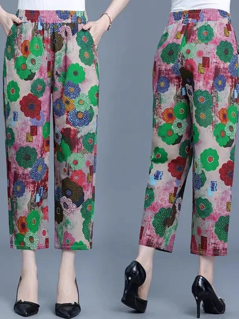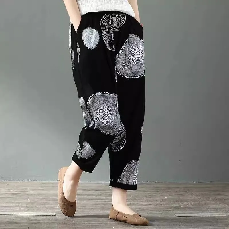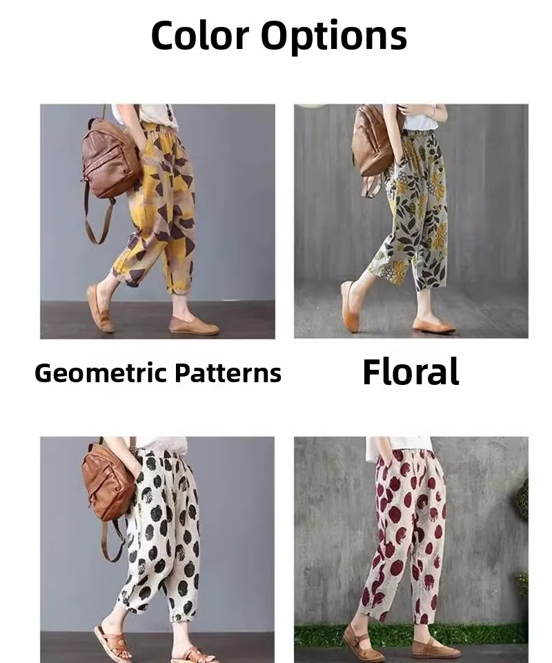 Made from printed cotton-linen material, these pants offer a soft touch and breathable wear, perfect for summer.