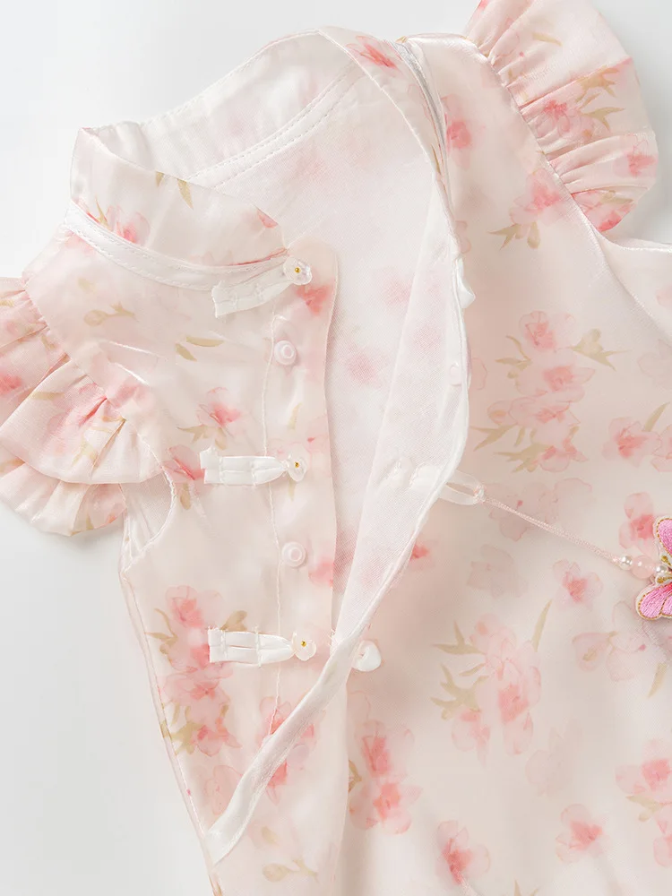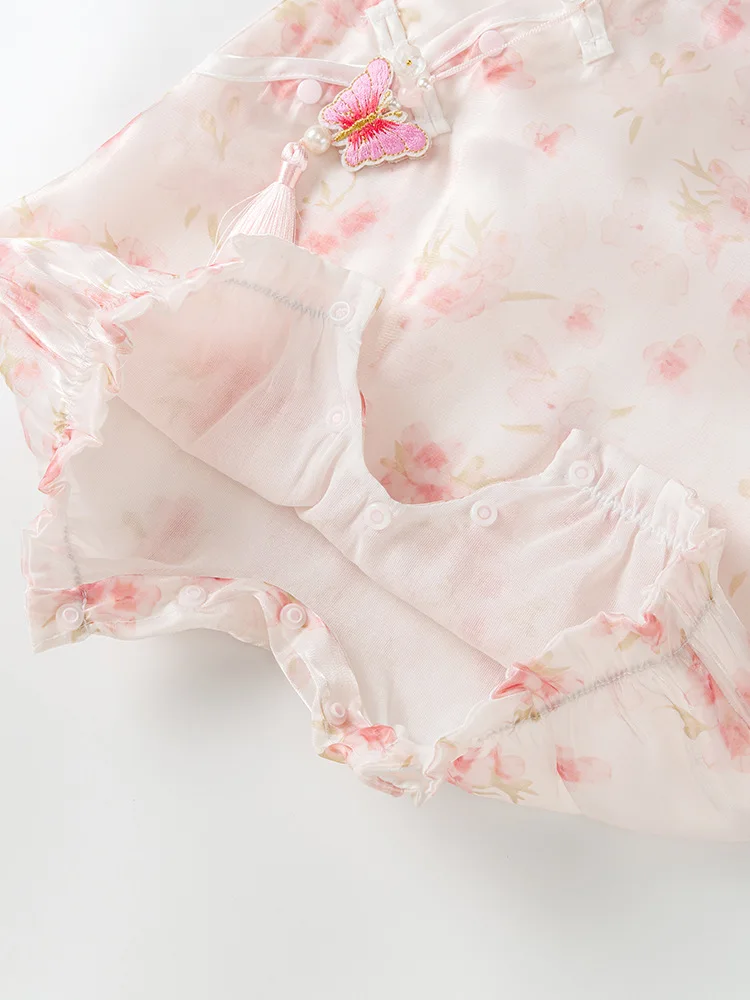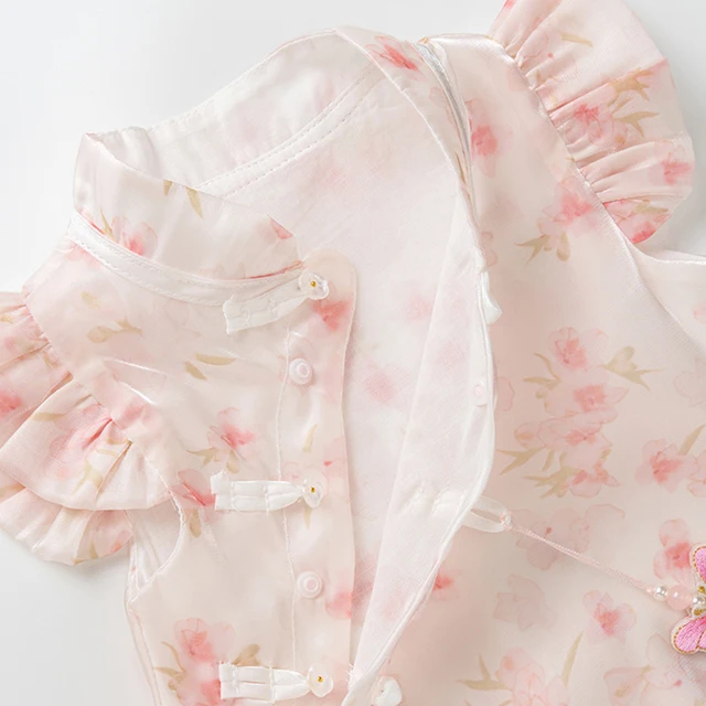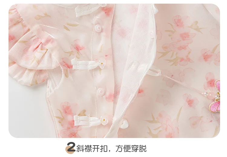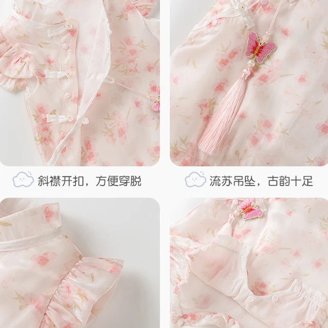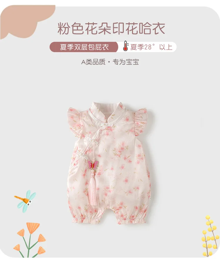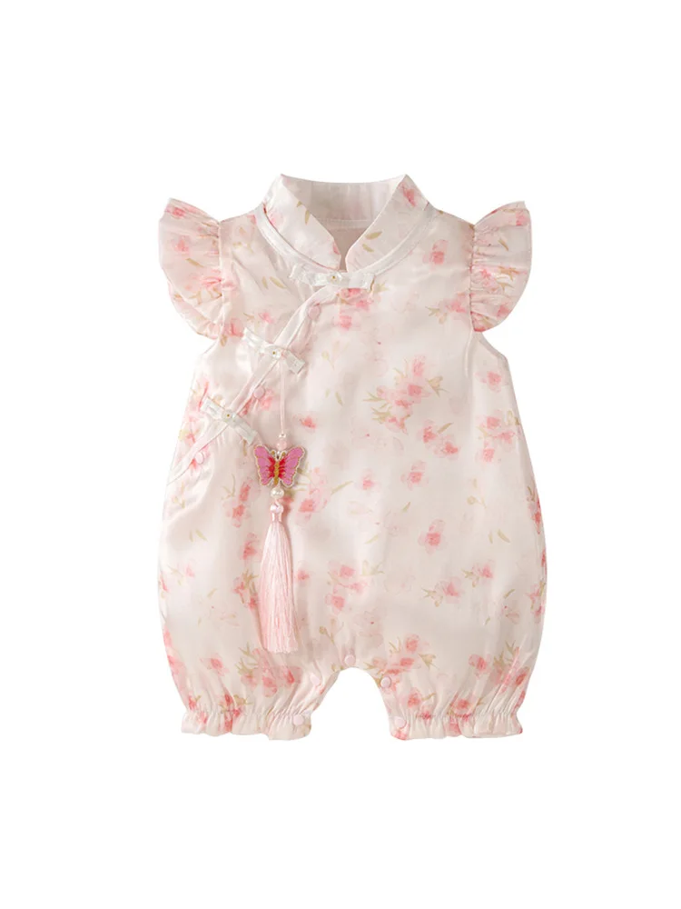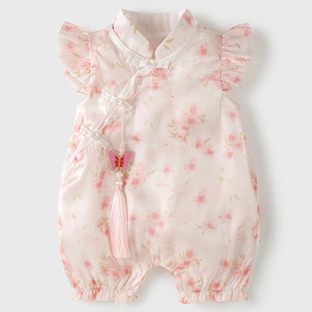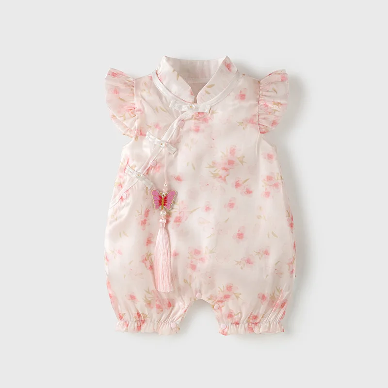 Summer Newborn Girls Clothes Fashion Chinese Style Cute Butterfly Flowers Sleeveless Cotton Rompers Jumpsuits