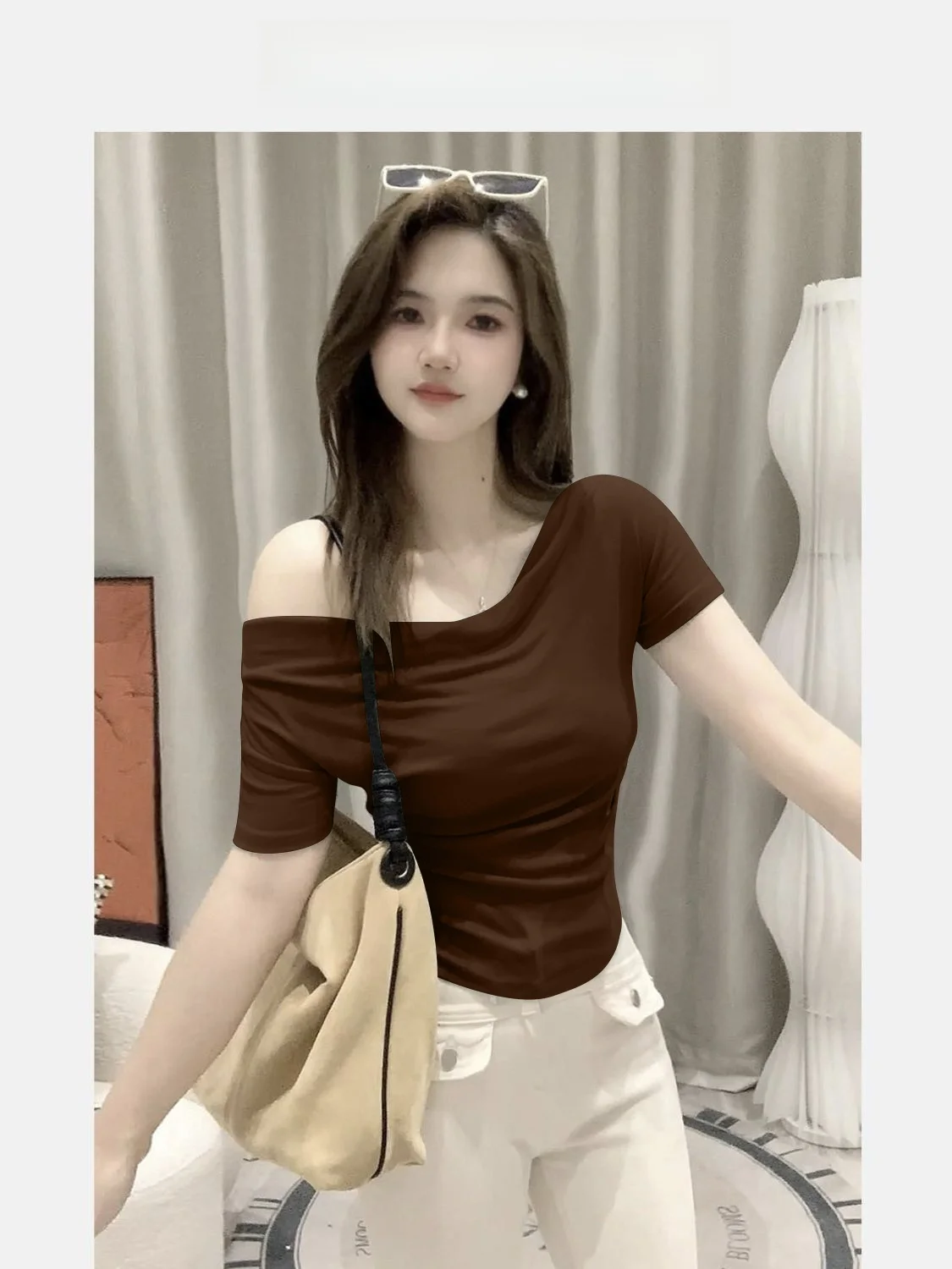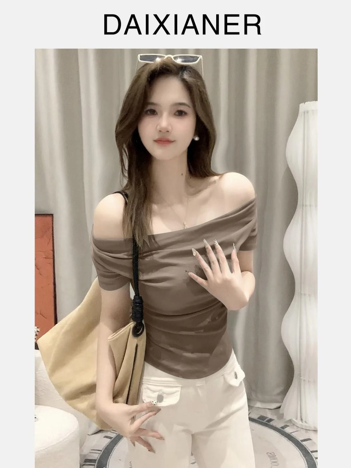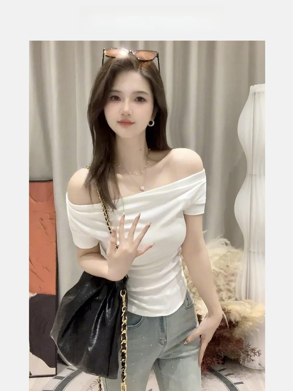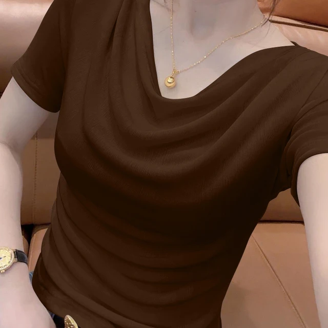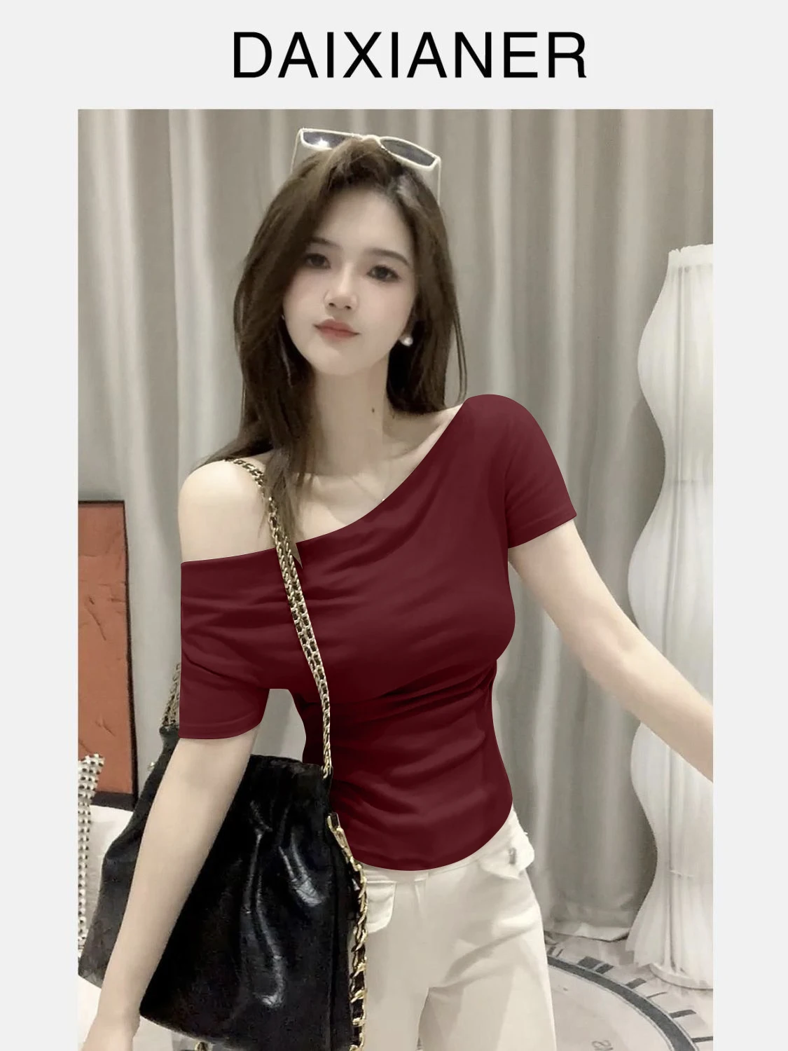 Summer ort Sve T-irt Women’s oulder Bared Slim Fit Korean Sle Pure Color Wear Resistant Tead Design