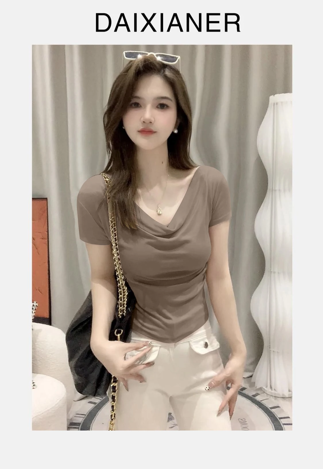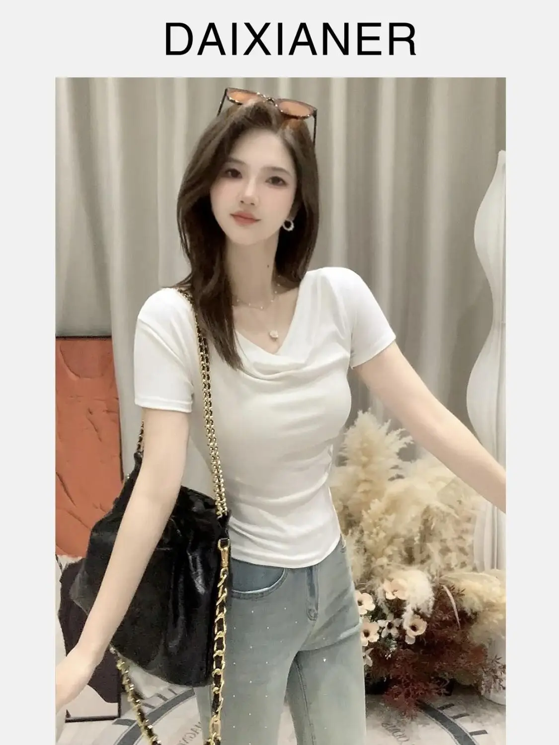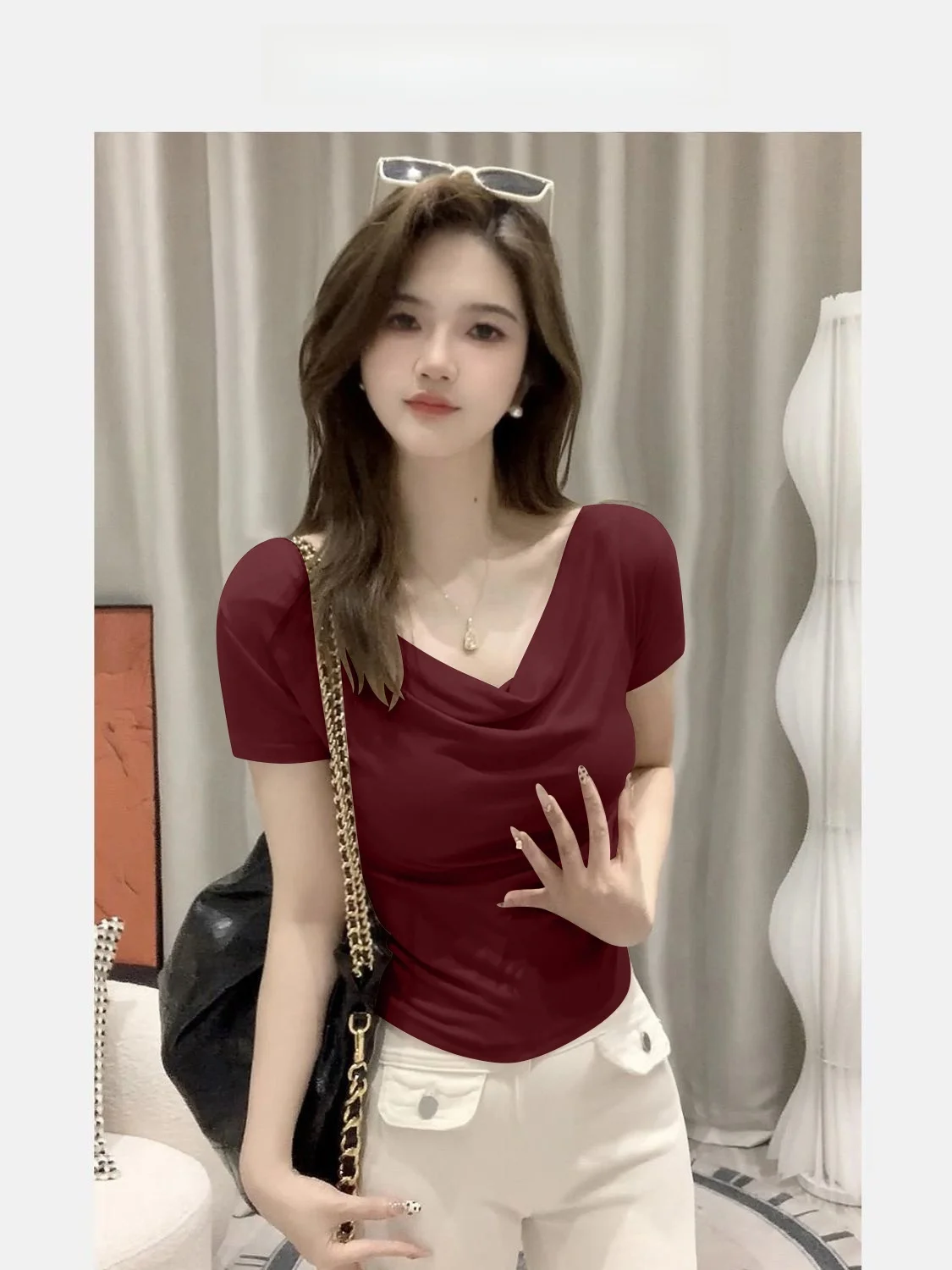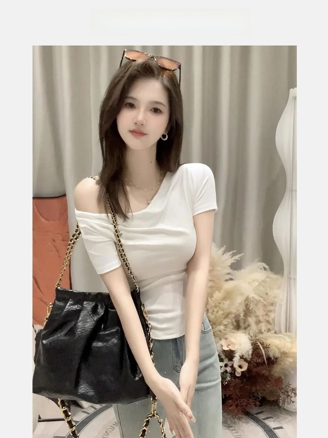 Summer ort Sve T-irt Women’s oulder Bared Slim Fit Korean Sle Pure Color Wear Resistant Tead Design