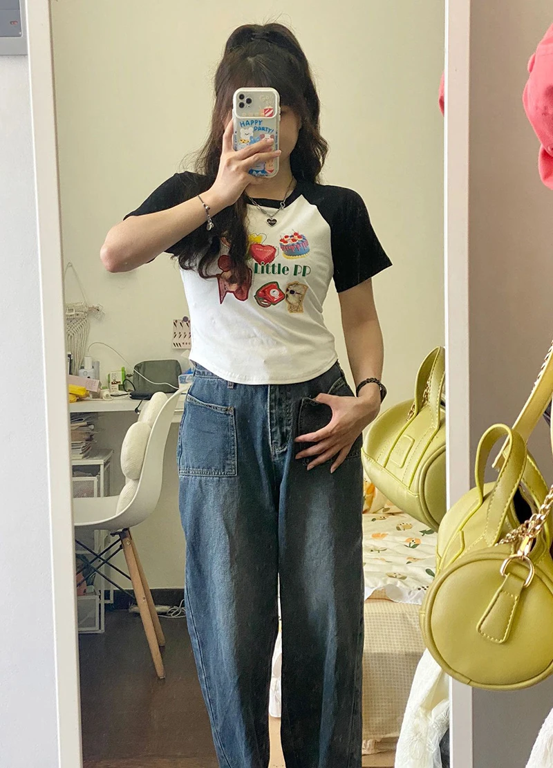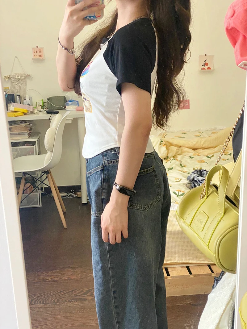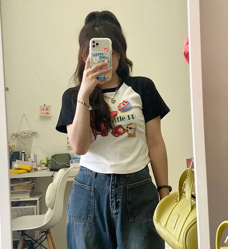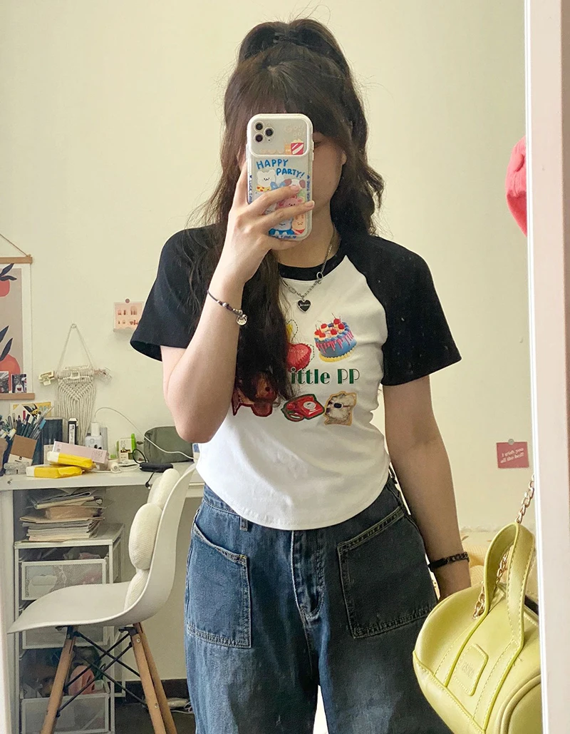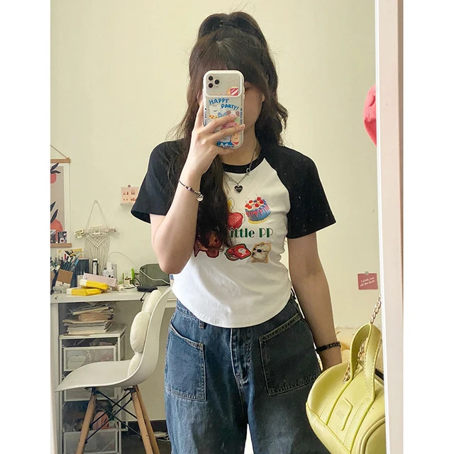 This summer short sleeve T-shirt features a chic Korean style design, perfect for fashion-forward women.