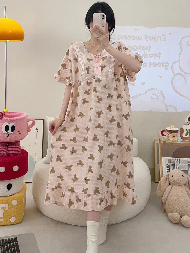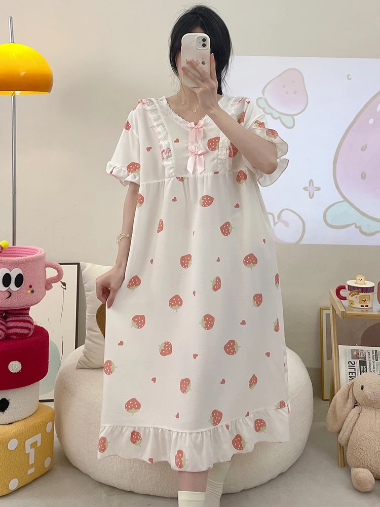 This summer sleep dress is designed for comfort with its lightweight fabric, perfect for hot summer nights.