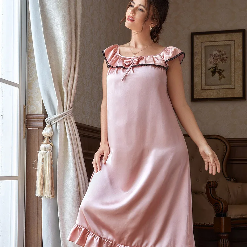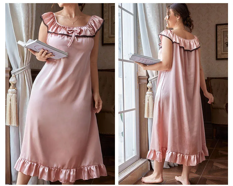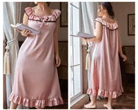 SUKAE Cute Panda Milk Silk Sleepwear Leisure Summer Nightdress Women Sleepshirt Casual Baby Blue Nightdress Cartoon Night Gown