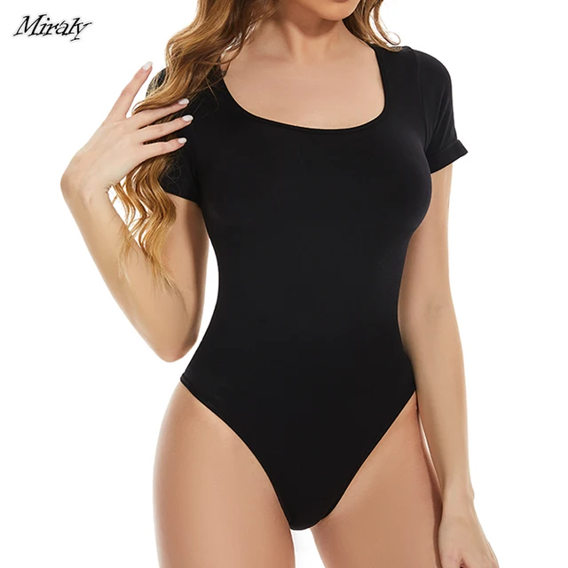 Sexy Ribbed Square Neck Short Sleeve Bodysuits, flattering square neckline, short sleeve, simple in design,don’t see through, Best womens, ladies and teen girl clothes.