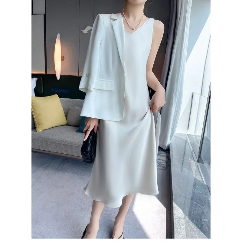 Slimming plus Size Long Sve irt Spring New Sle Korean Version High Waist A-Line Dr Two-Piece Set for plus Size Women