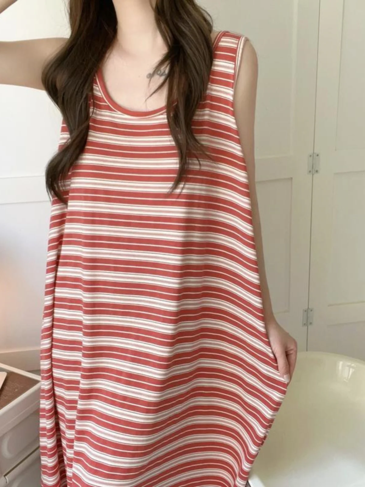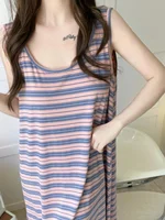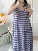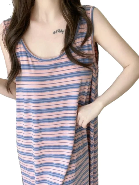 Summer Stripe Svel Large Size Vest Nightgown Loose Belly Covering Wearable Home Clothes Materni Skirt