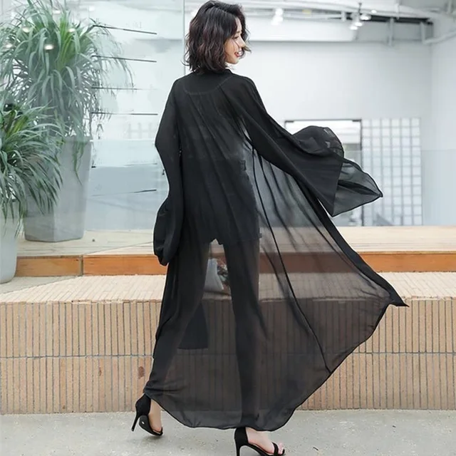Summer Sun Protection Clothing Women Long Chiffon Cardigan Solid Color Ladies Shawl Female Cardigans Women Loose Thin Coats