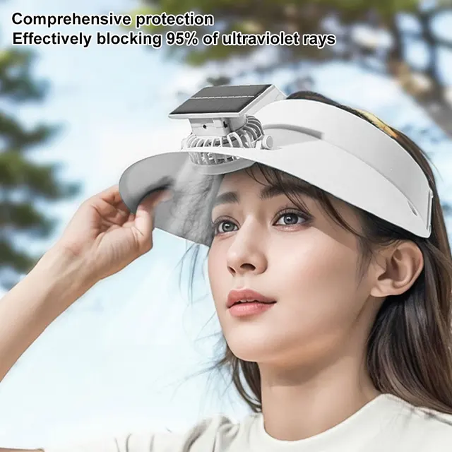 Summer Sun Hats with Fan Three Temp Settings Empty Top Cap Breathable Cooling Fan Hat for Women for Sun Protection and Outdoor Features: 1.Advanced UV Blocking Technology: This sun visor hat is designed with cutting-edge light energy technology to block harmful UV rays effectively, making it the perfect choice for those sunny days. 2.Comprehensive Protection: Offering formidable coverage, the summer sun hat blocks up to 95% of UV radiations, ensuring your skin remains safe from harsh sunlight. 3.Versatile Usage: Whether for daily life or urban commuting, this empty top cap adapts perfectly to your needs, providing all-around protection. 4.All-Weather Companion: Whether it’s the sun’s heat or rain, the breathable cooling fan hat offers reliable shielding, keeping you comfortable no matter the weather. 5.USB Rechargeable Fan Design: The beach hat features a rechargeable design with a USB cable, allowing you to power up the fan anytime, anywhere, even without electricity.