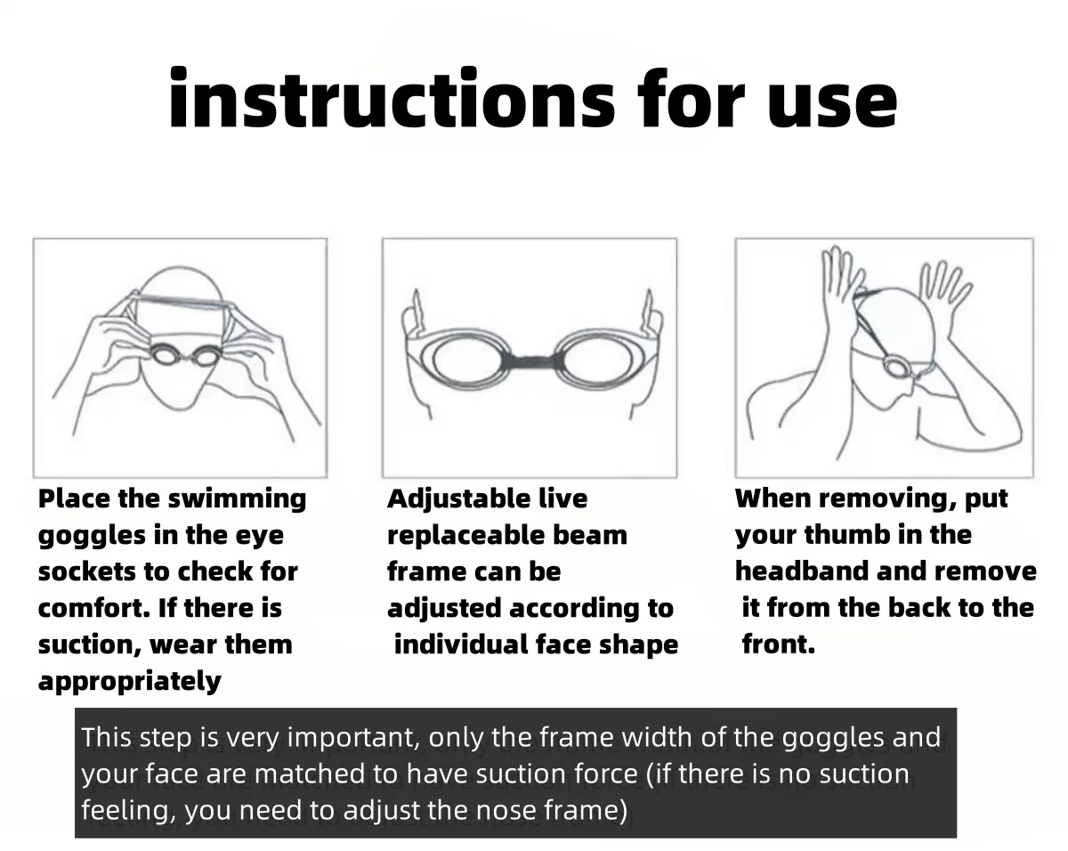 5.This swimming goggle is also made of comfortable silicone material, which provides a comfortable fit and ensures that the goggle fits your face well to prevent water from entering your eyes. It also features an adjustable buckle design that allows you to adjust the fit of the swim goggles according to your personal needs, and a removable soft nose bridge that fits a variety of face shapes.