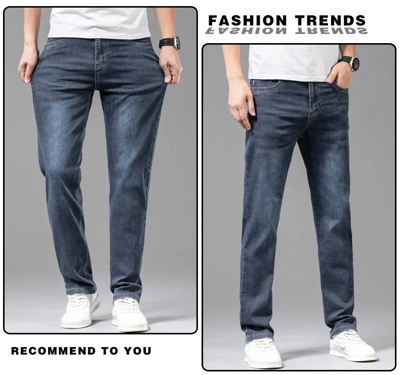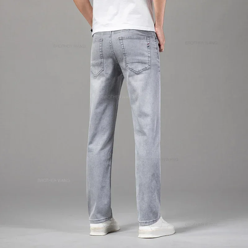 Summer Thin Business Baggy Jeans Men's Clothing Elastic Cotton Fashion Gray Straight Casual Pants Brand Male Denim Trousers