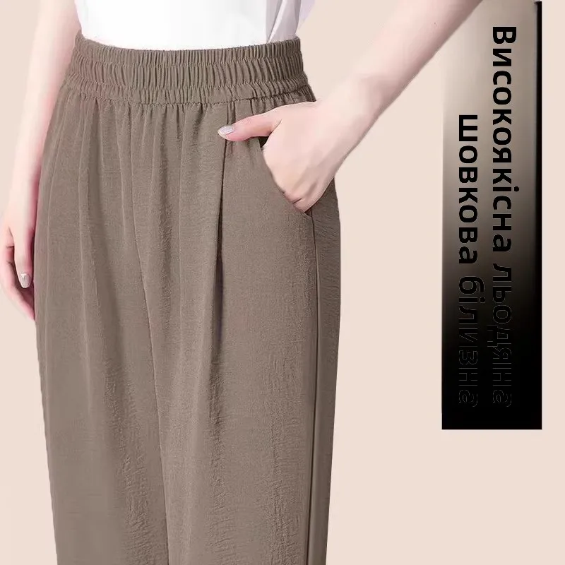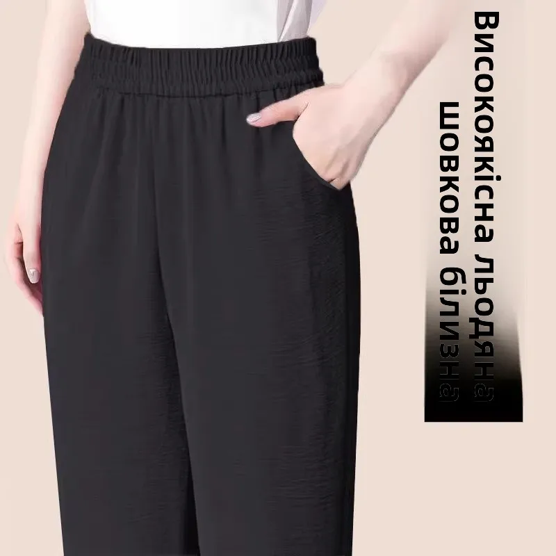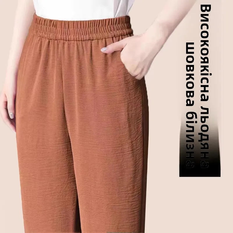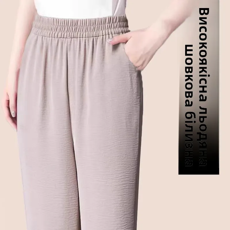 Made from ice silk material, these pants offer a cool and comfortable feel, ideal for summer wear.