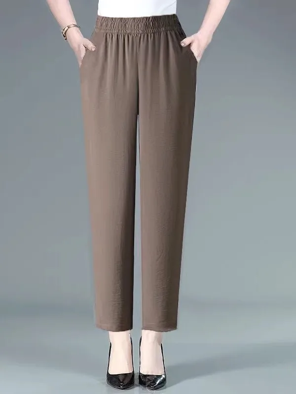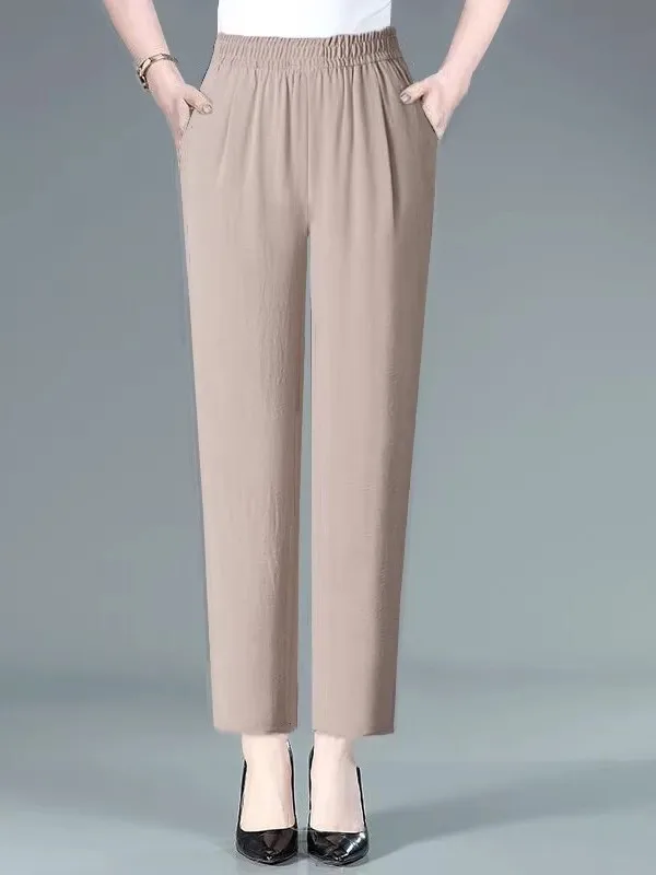 Made from ice silk material, these pants offer a cool and comfortable feel, ideal for summer wear.