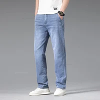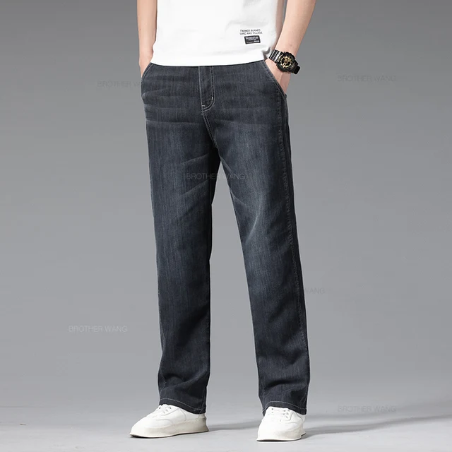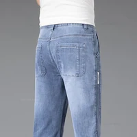 Summer Thin Jeans Men’s Loose Straight Pants Fashion Elastic Waist Stretch Cotton Business Casual