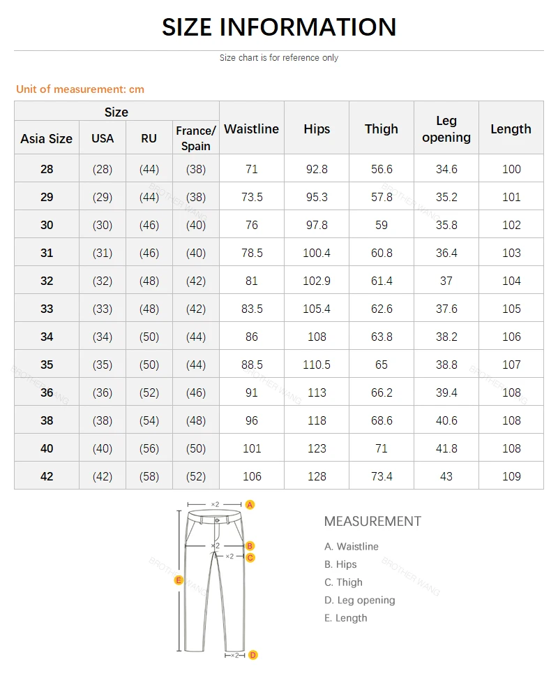 1. The size is Chinese size, pants size 32 = 32 inches waist = 81.5cm waist.
