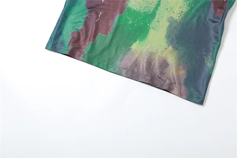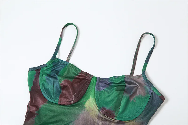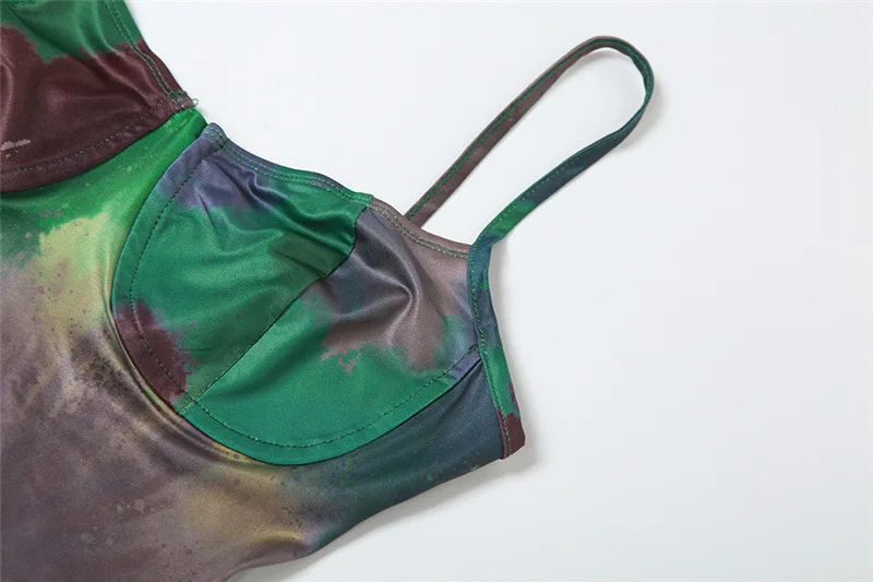 Summer Women Vintage Tie Dye Print Maxi Dress Sexy Backless Cleavage Body-shaping Elegant Spaghetti Strap