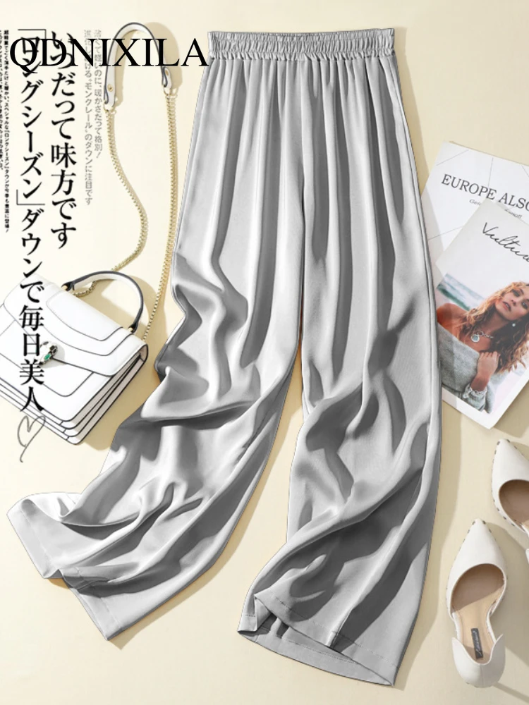 2025 Casual High Waist Pocket Bottoms ZANZEA Women Pants Elegant Wide Leg Long Trouser Office Lady Satin Silk Formal Pantalons