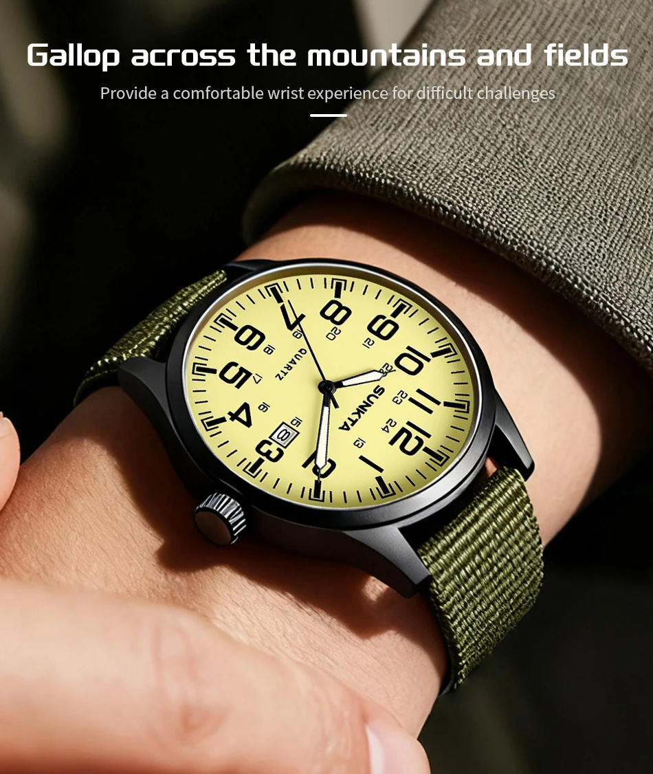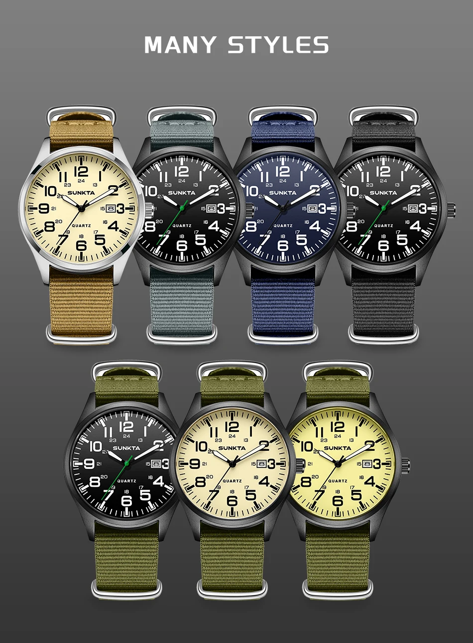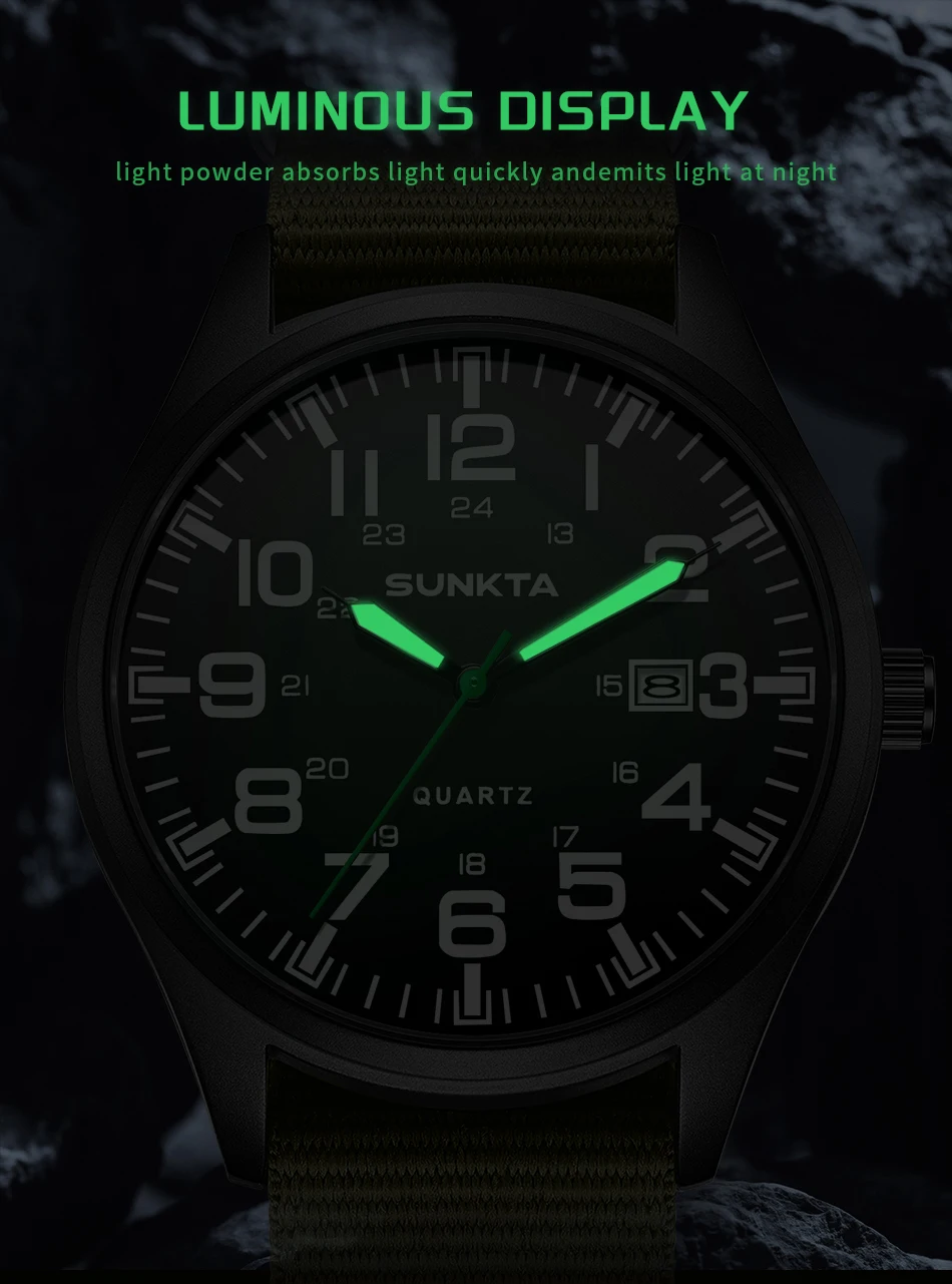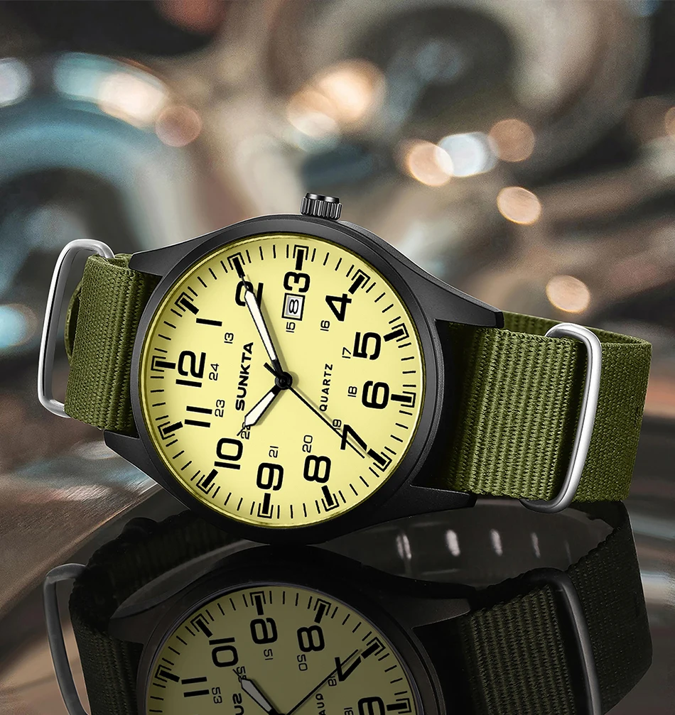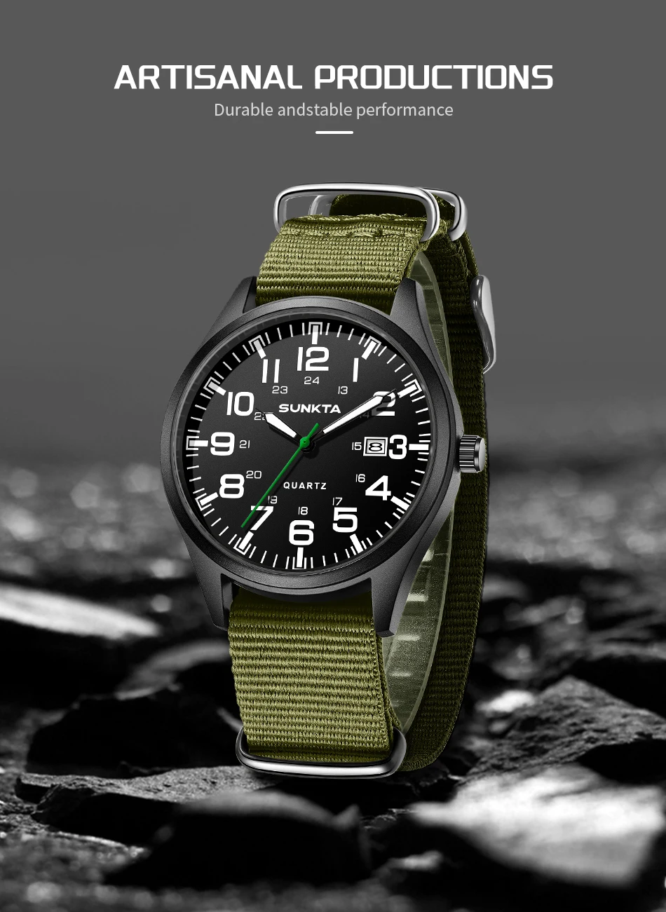 Sunkta Outdoor Sports Quartz Man Watch Retro Casual Fashion Nylon Strap Waterproof Luminous Auto Date