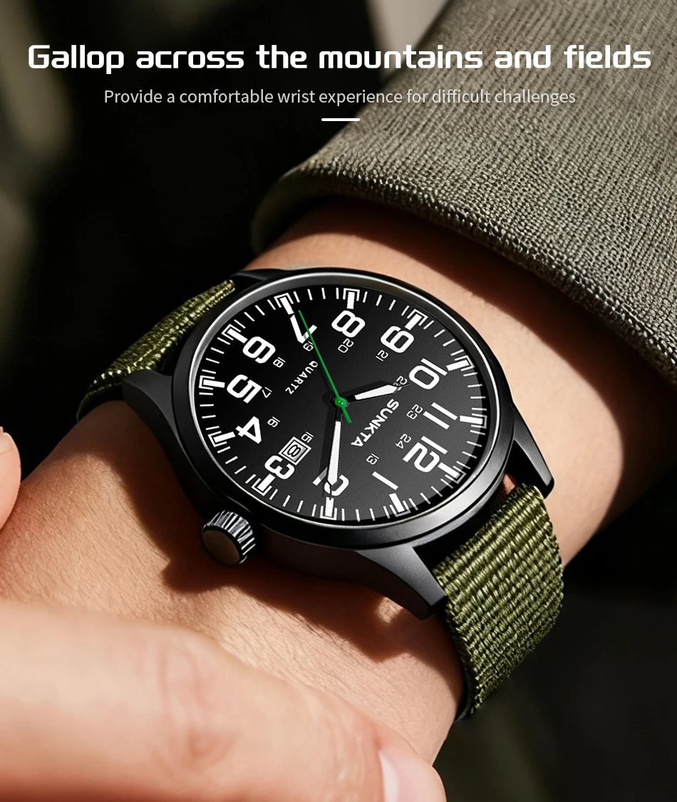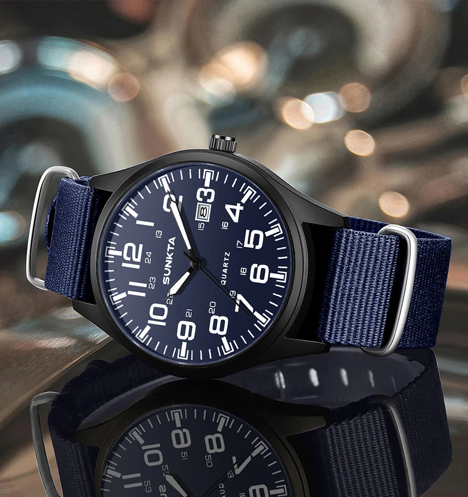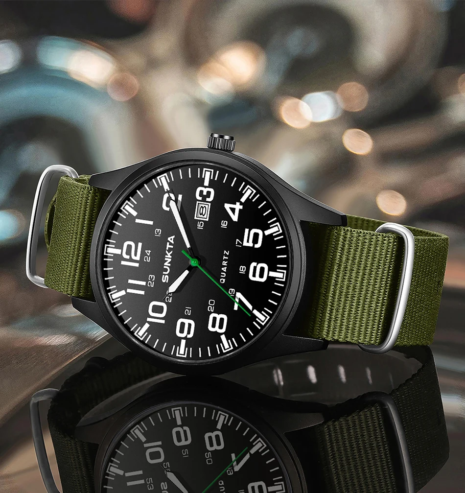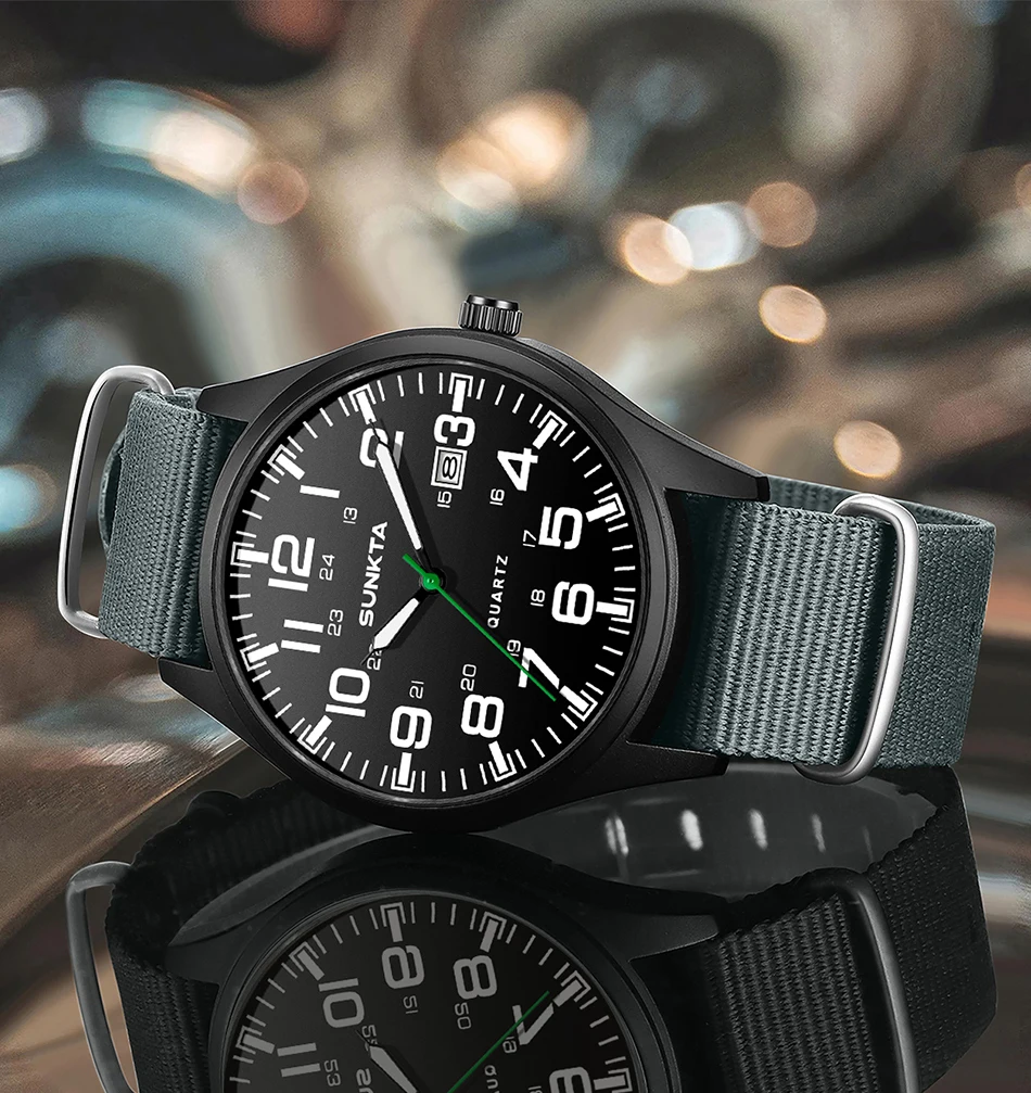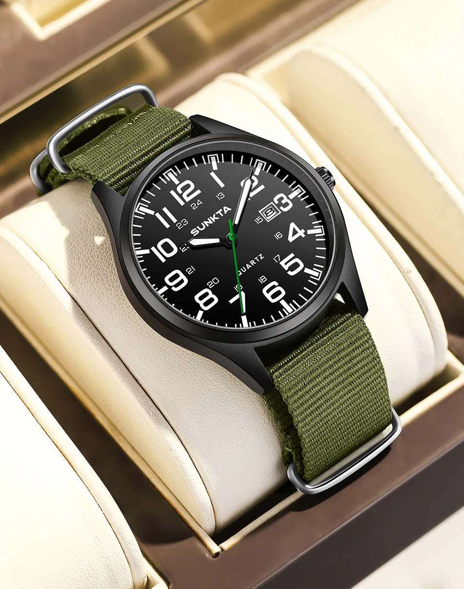 Sunkta Outdoor Sports Quartz Man Watch Retro Casual Fashion Nylon Strap Waterproof Luminous Auto Date