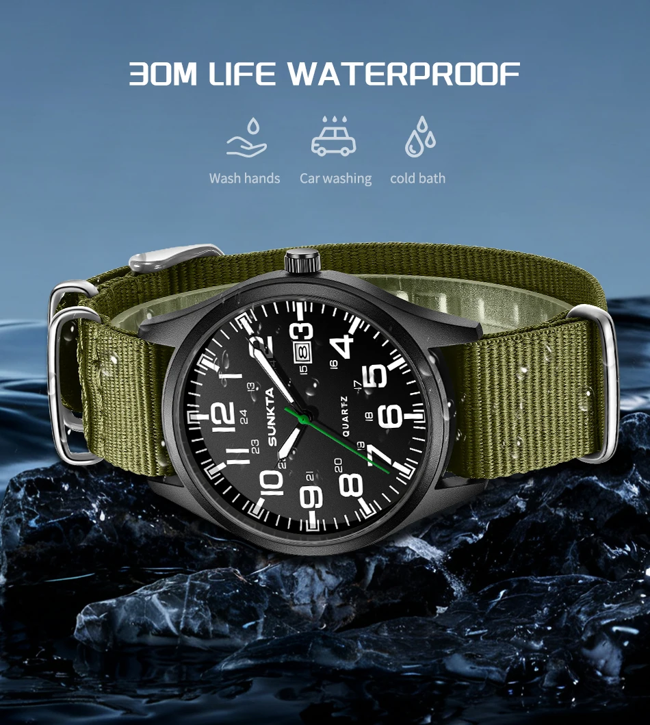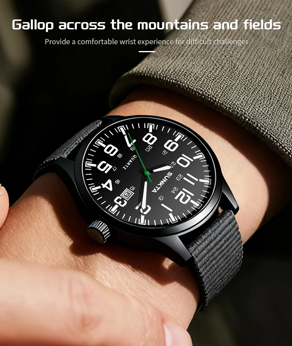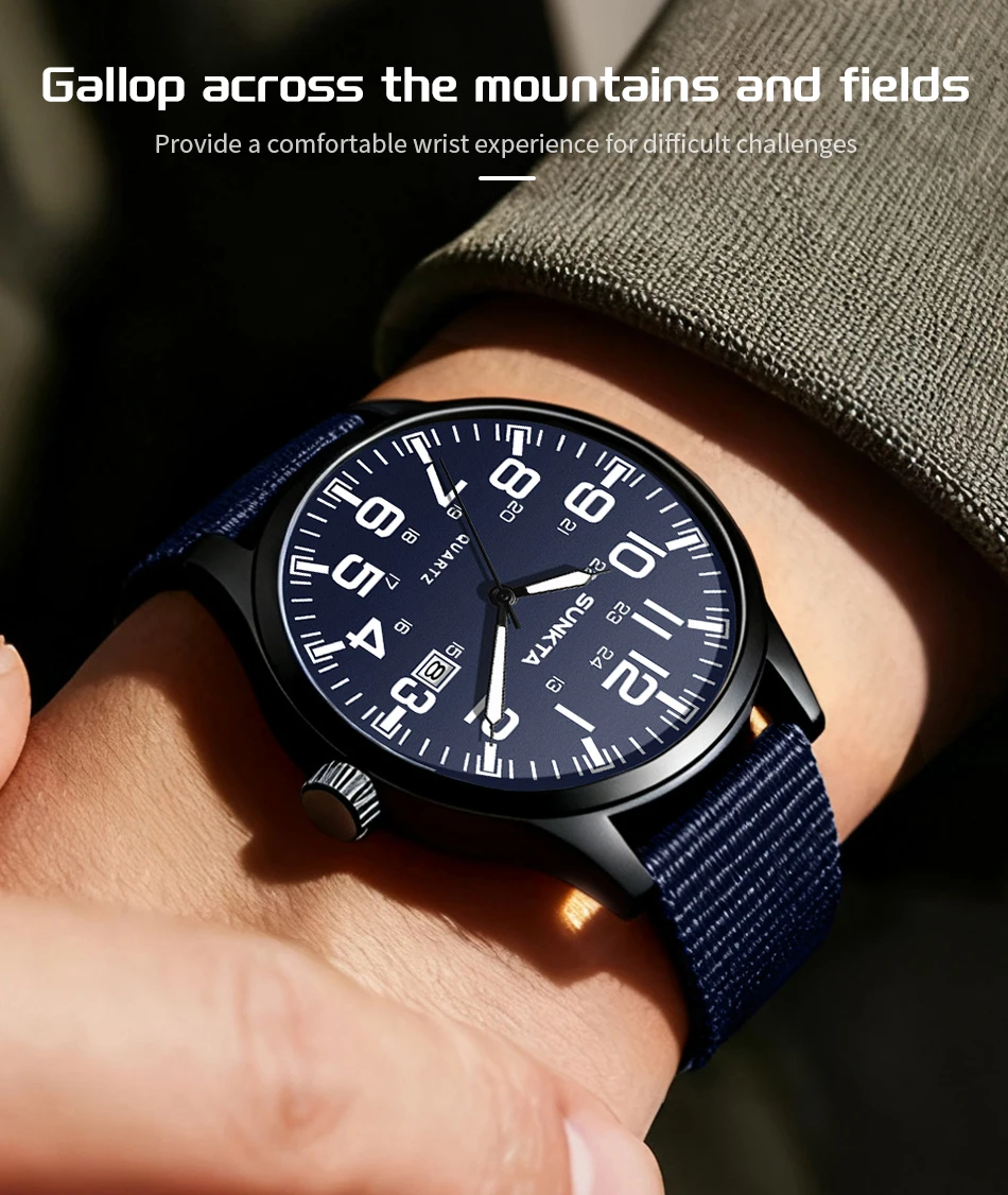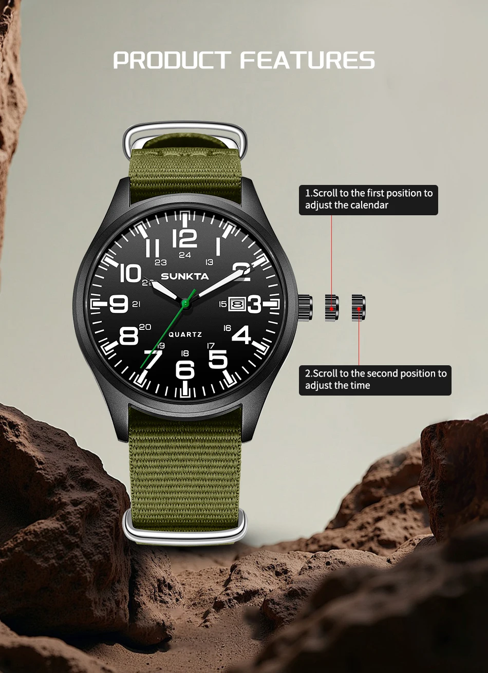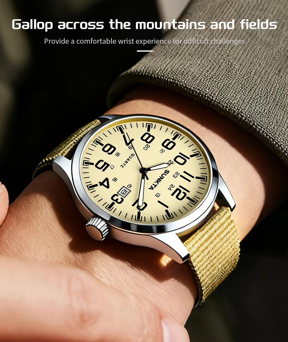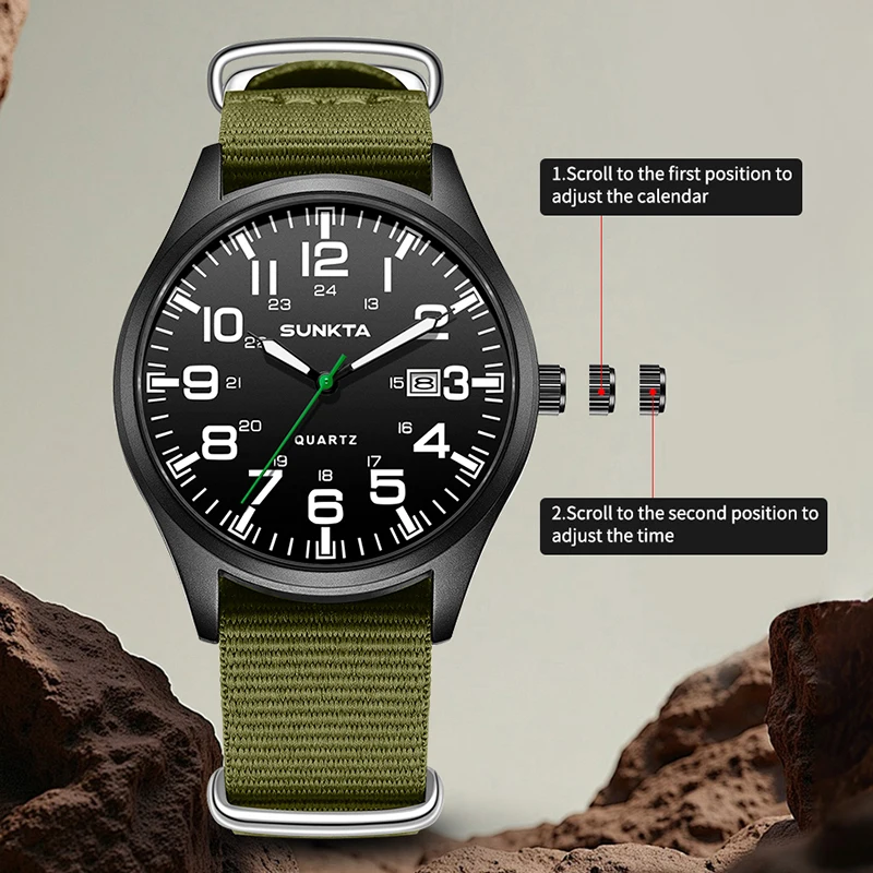 Sunkta Outdoor Sports Quartz Man Watch Retro Casual Fashion Nylon Strap Waterproof Luminous Auto Date