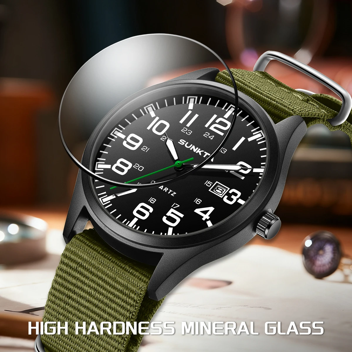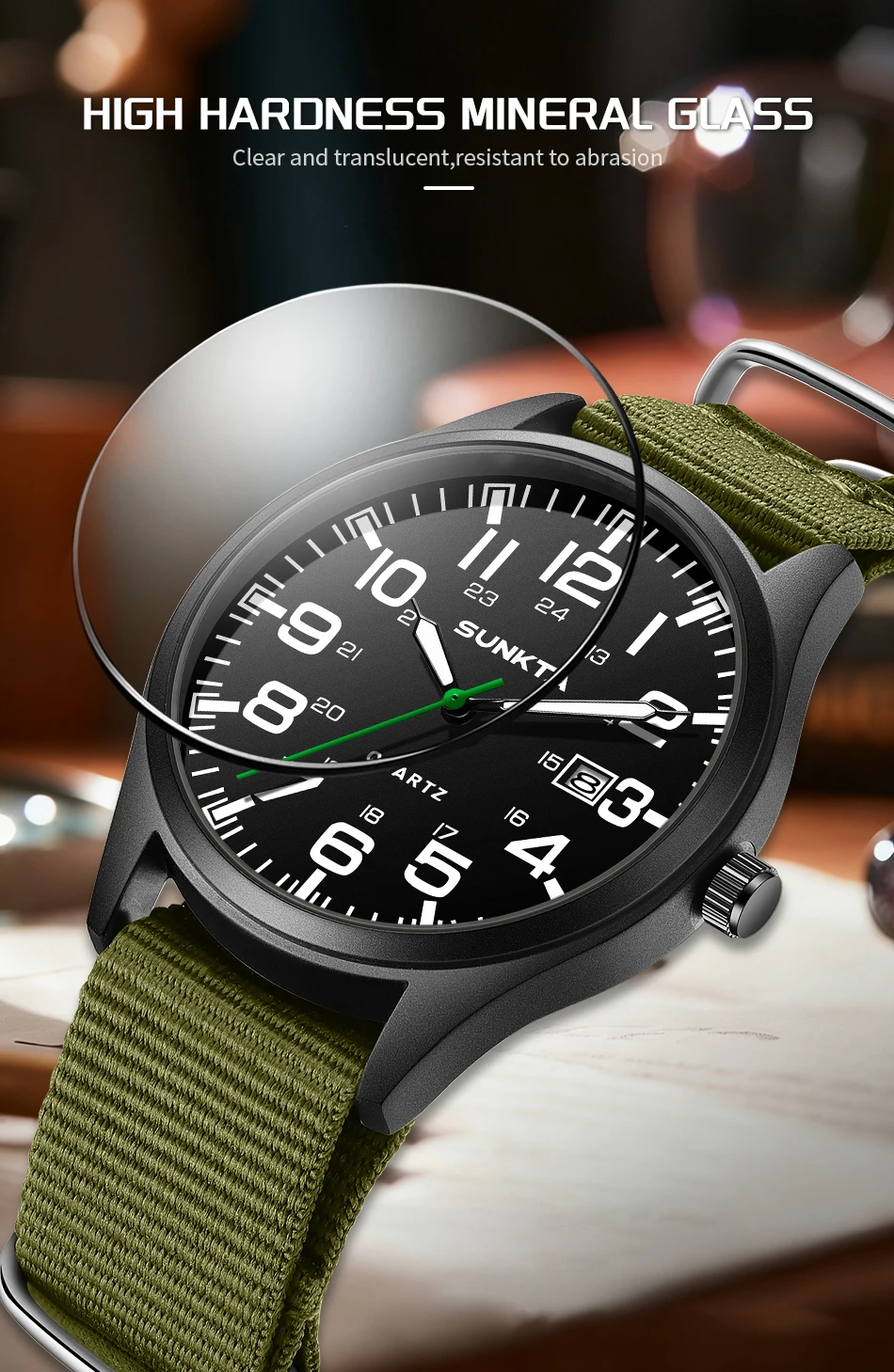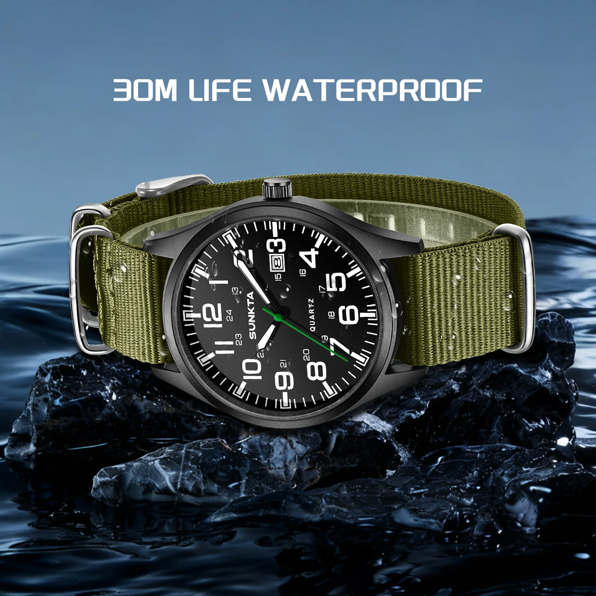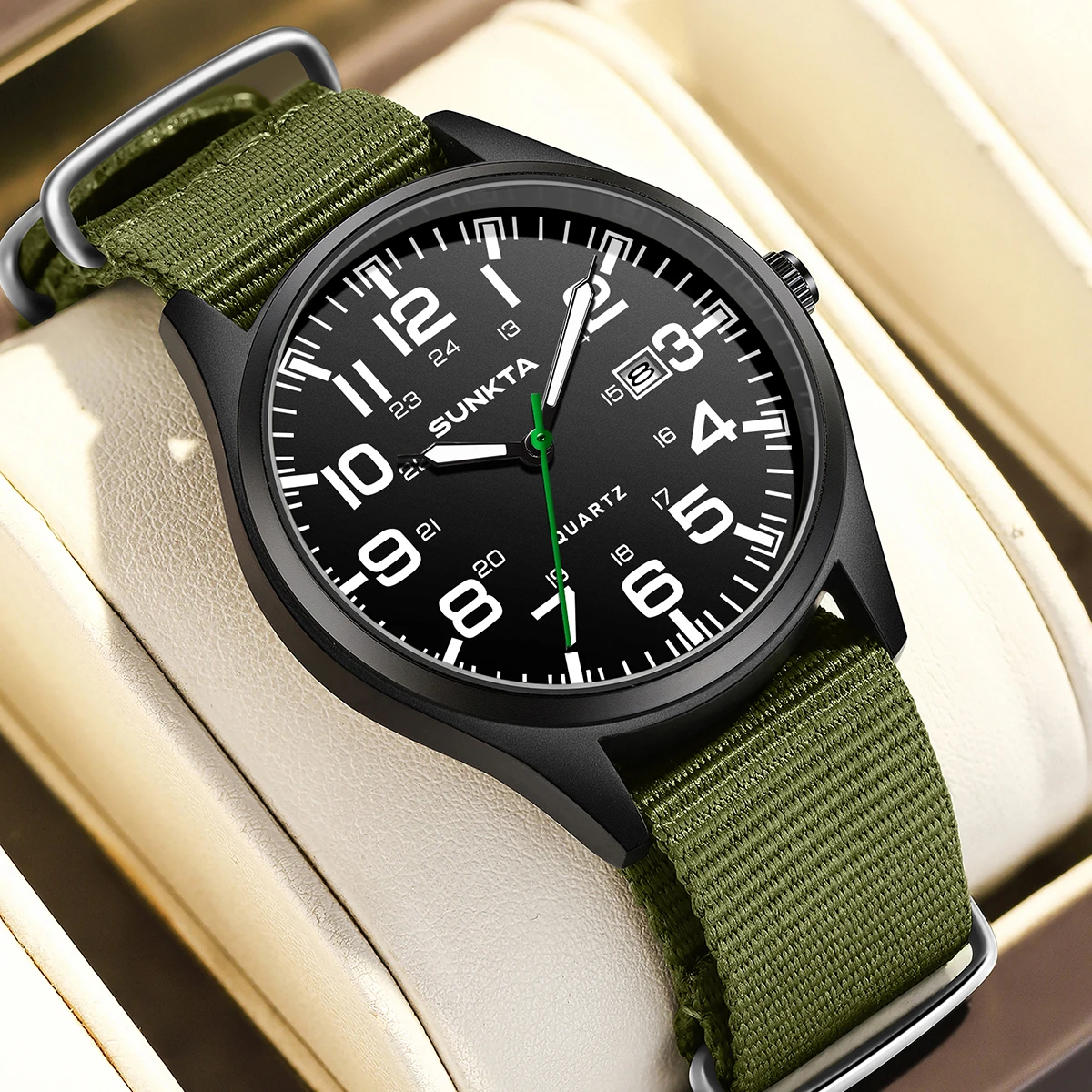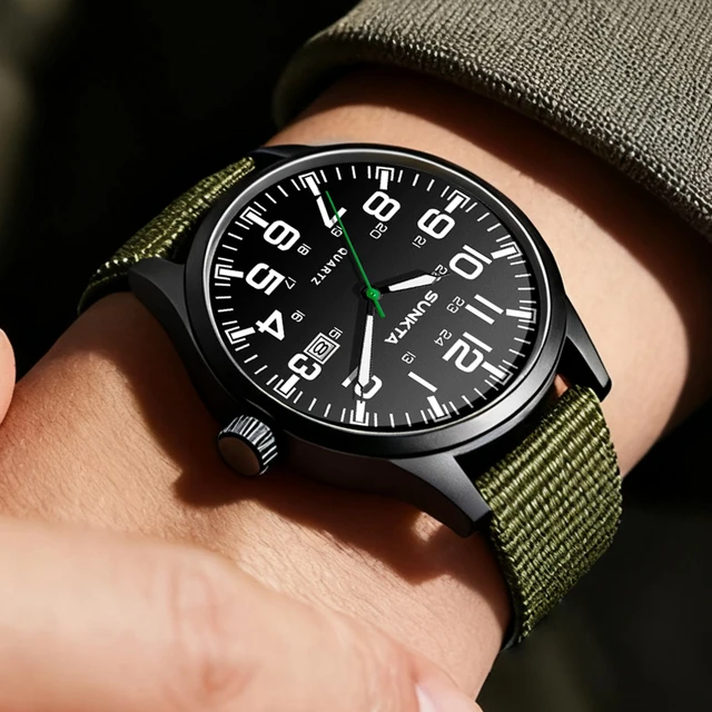 Sunkta Outdoor Sports Quartz Man Watch Retro Casual Fashion Nylon Strap Waterproof Luminous Auto Date