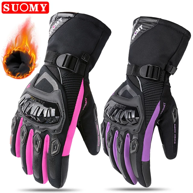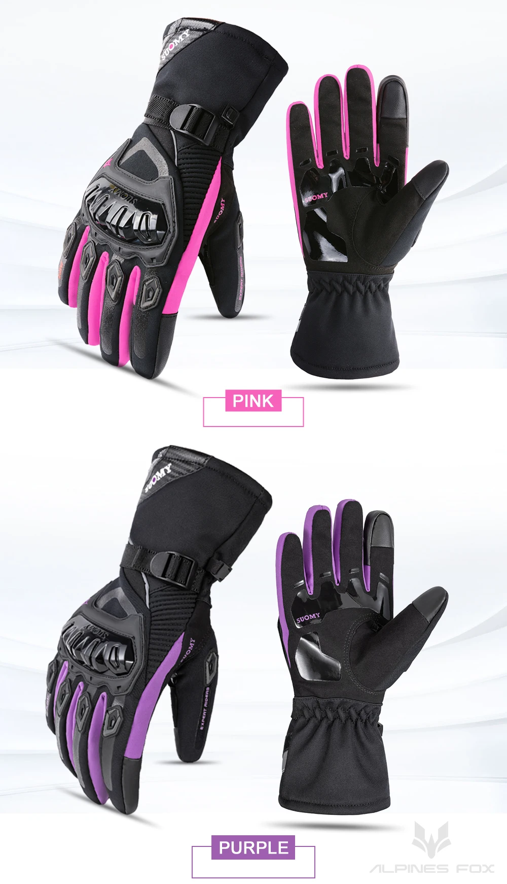SUOMY Winter Warm Women Pink Motorcycle Gloves 100%Waterproof Lady Teens Girls Purple Motocross Motorbike Racing Riding Gloves