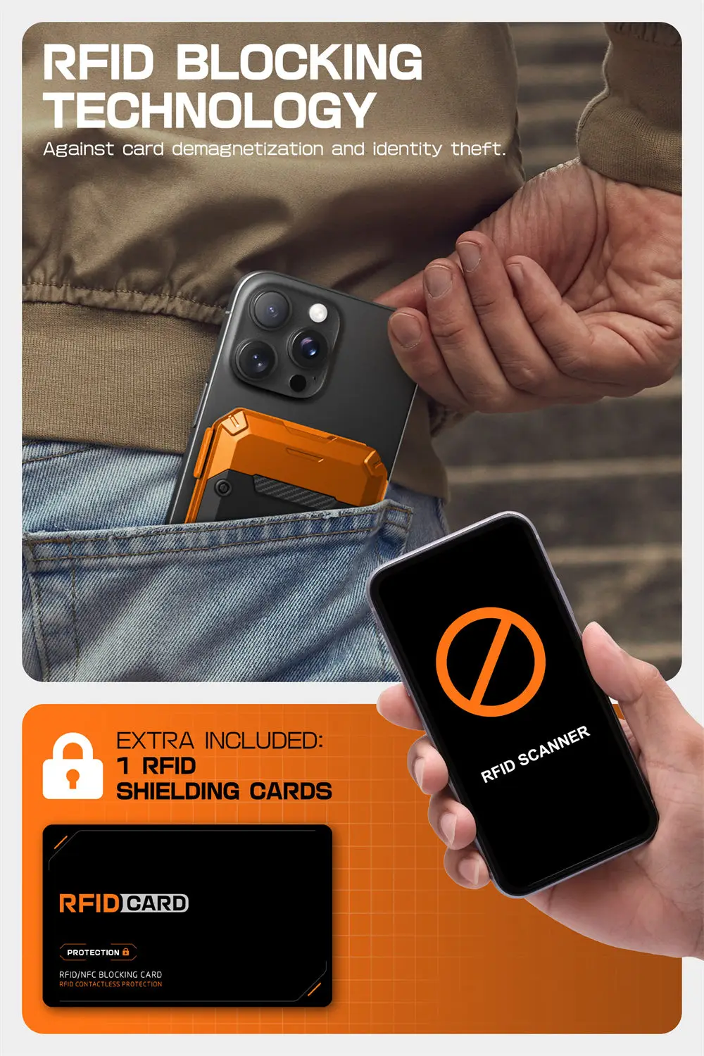 [Security & Privacy]: Included 1 RFID Card with RFID blocking technology to prevent card demagnetization and identity theft, it can protect the information security of all cards in the wallet.