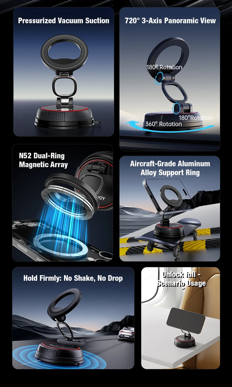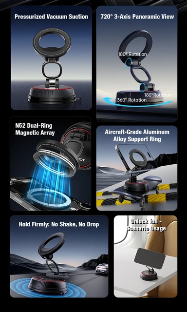 Price range: 43.73$ through 70.27$Super Strong Magnetic Phone Holder Foldable Design 360° Adjustable Vacuum Car Mount For Car Desk Bathroom