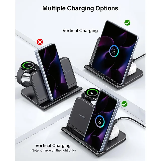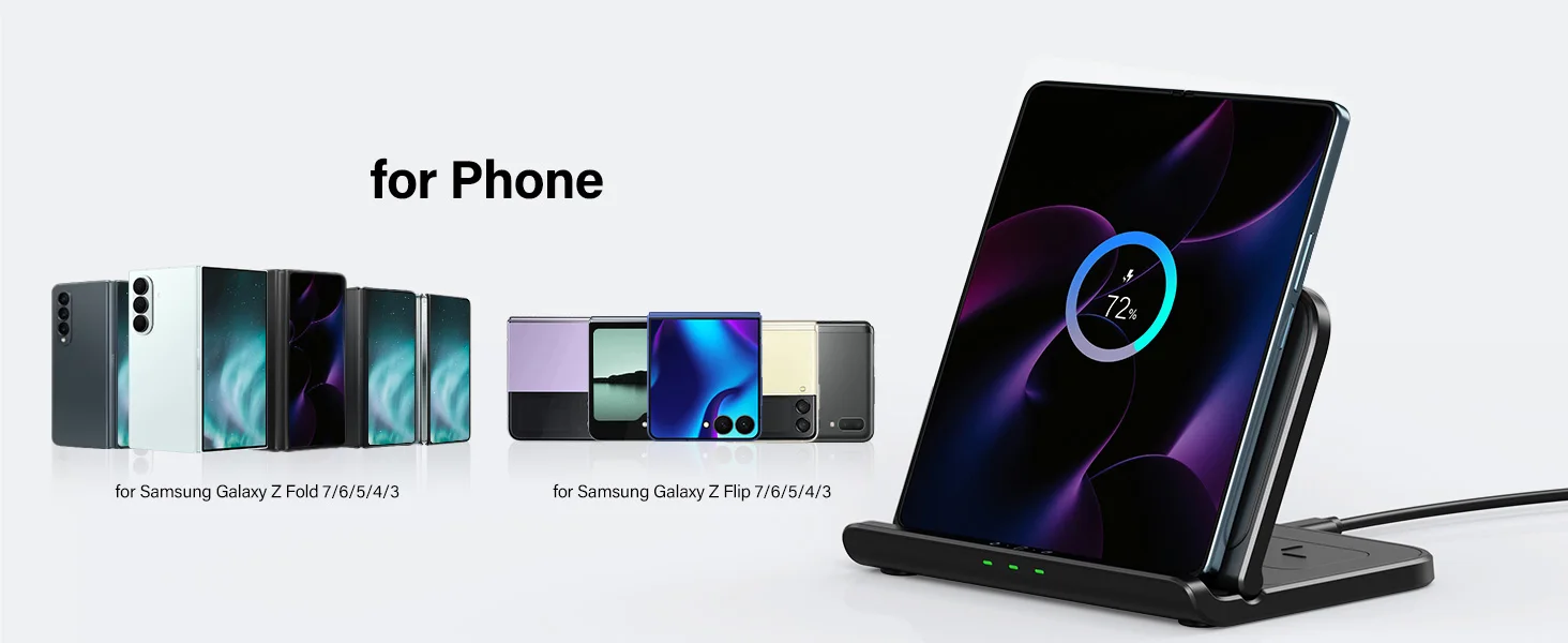 Yes, you can charge a foldable phone in a horizontal position. The main feature of this wireless charger is its three coils, which support different charging orientations for phones.