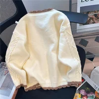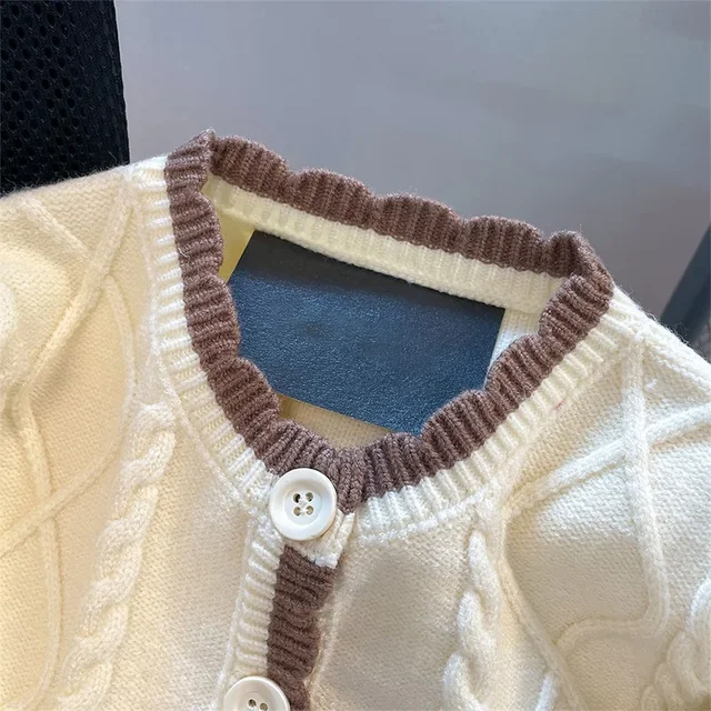 Women's Knitted Sweater Autumn Style Color-Block Panel Jacket Long Sleeve Crew Neck Single-Breasted Cardigan