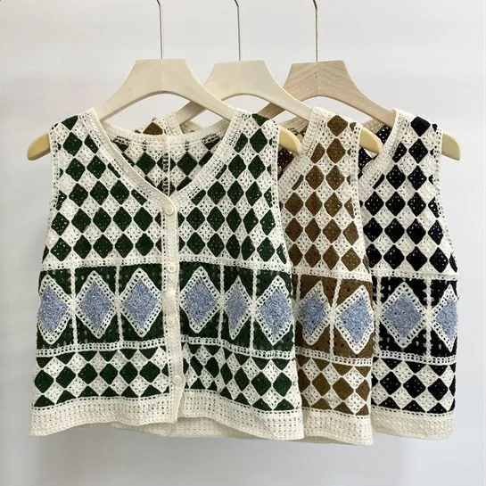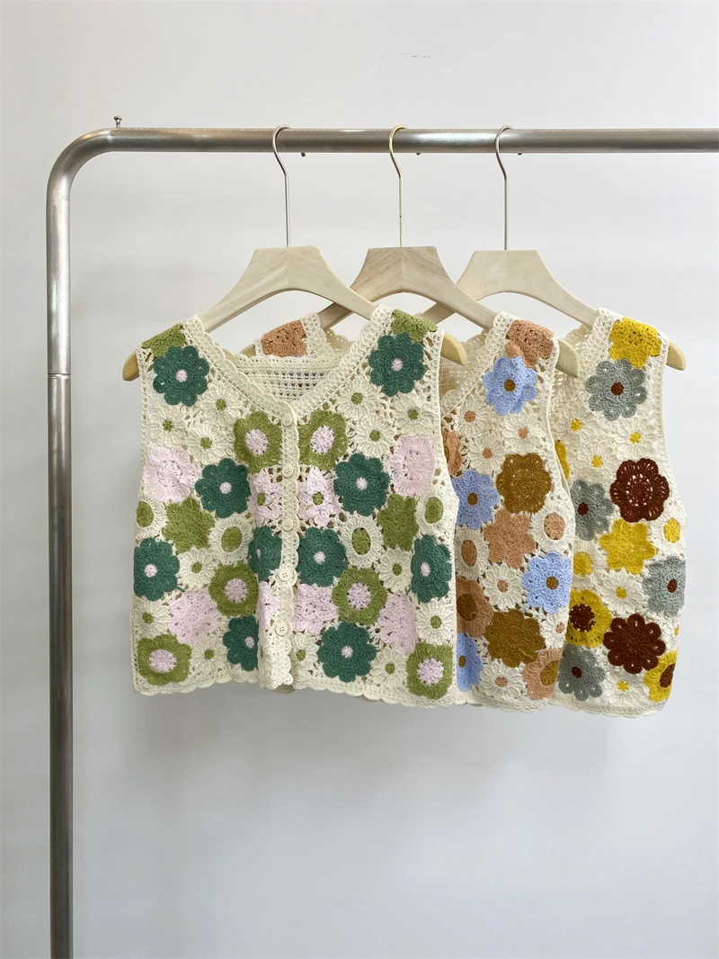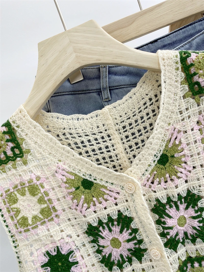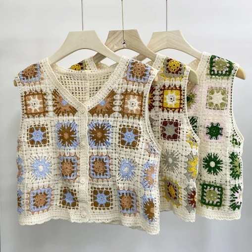 Featuring a unique blend of vintage patchwork colors and lacework, this vest stands out with its distinctive design.