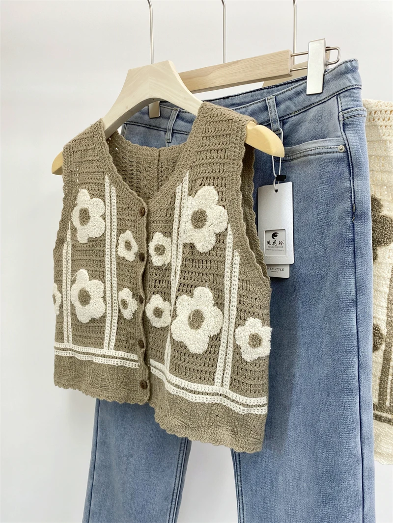 This sweet, forest-inspired vacation-style vest offers a versatile look that pairs well with various outfits.