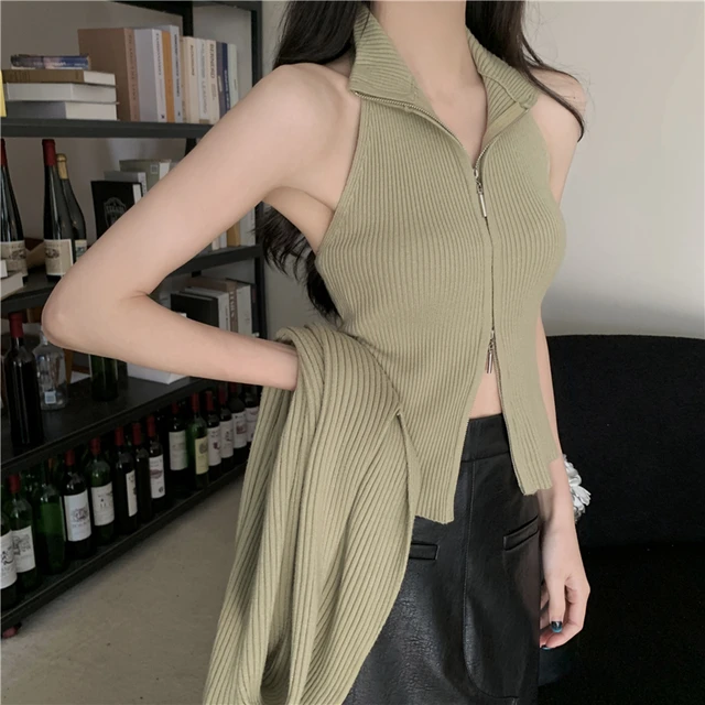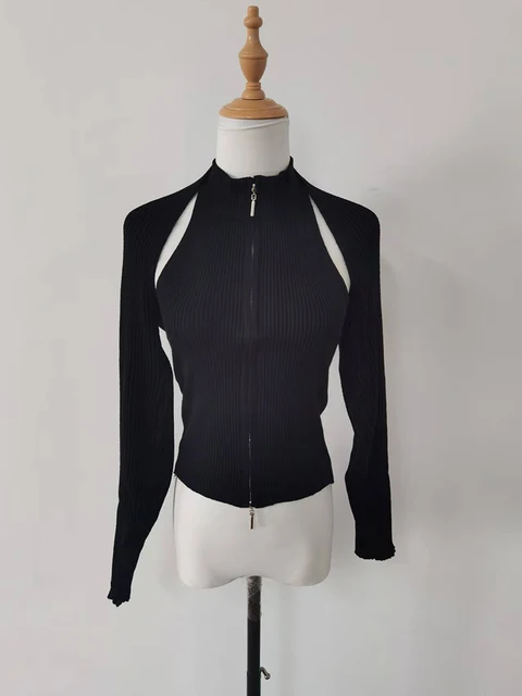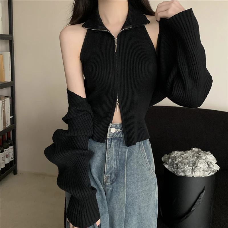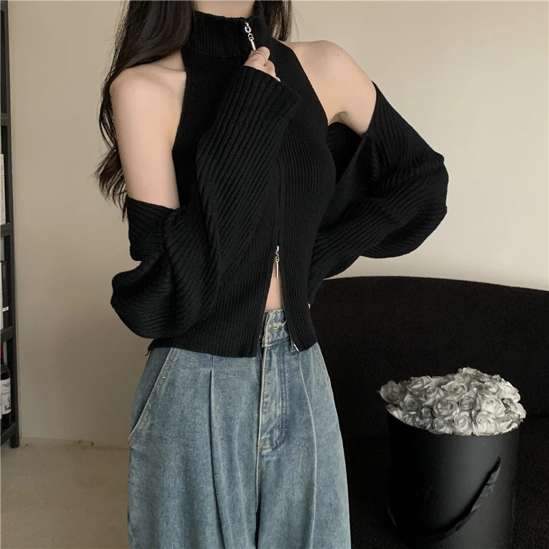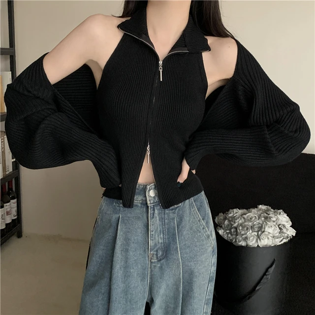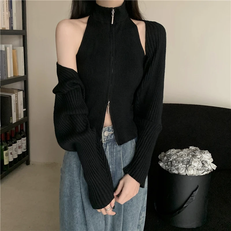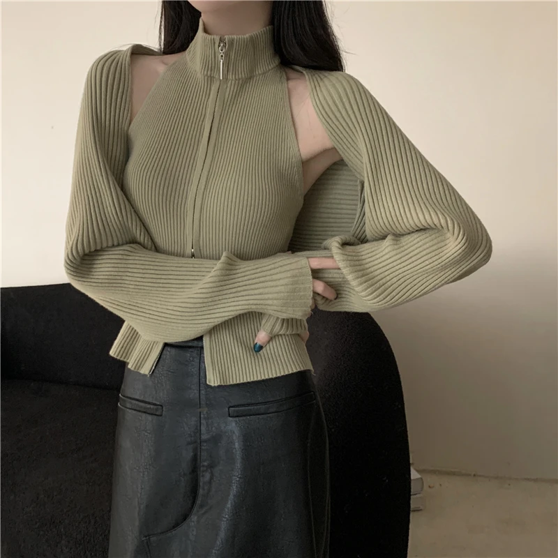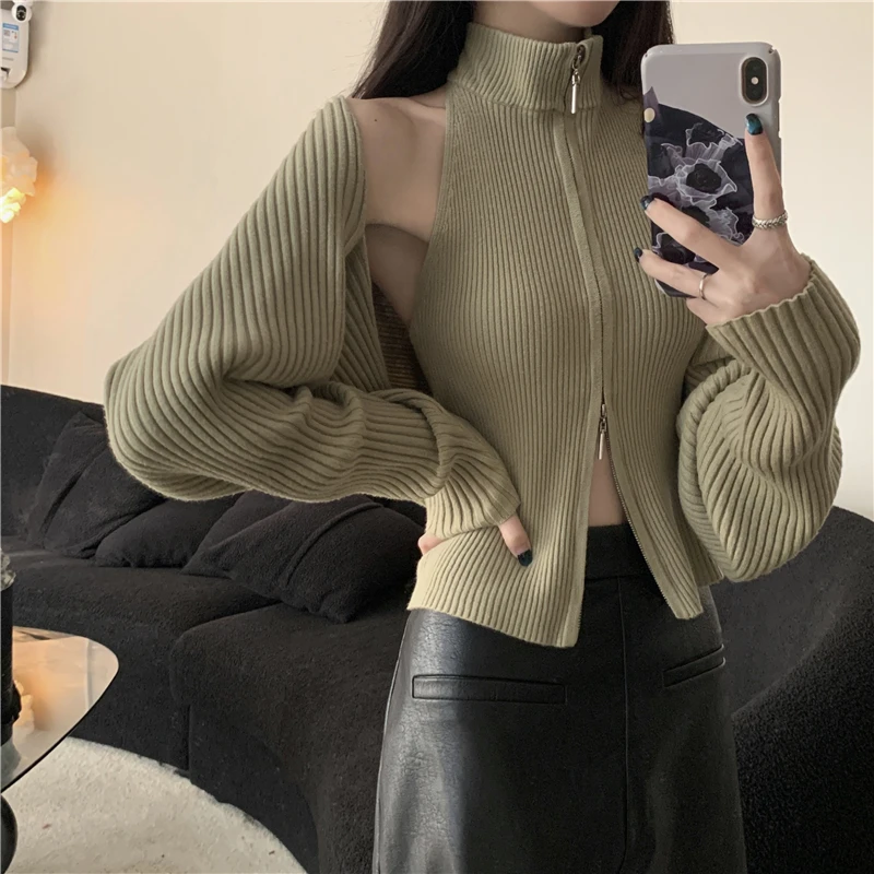 Sweet Hot Girl Knitted Suit Women’s Autumn Winter Zipper Vest Long-sleeved Shawl Cardigan Two-piece