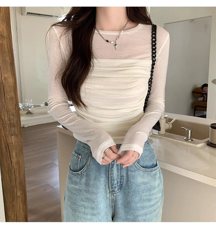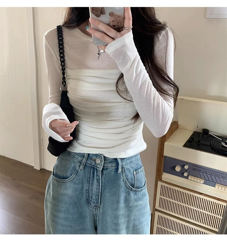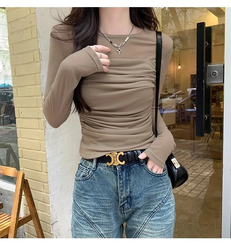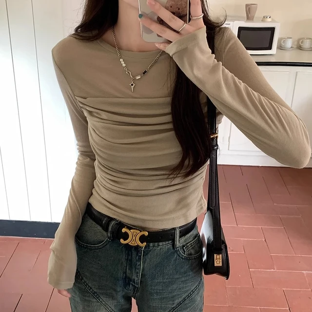 The long sleeve design of this top makes it suitable for autumn wear, keeping you warm while maintaining a stylish look.