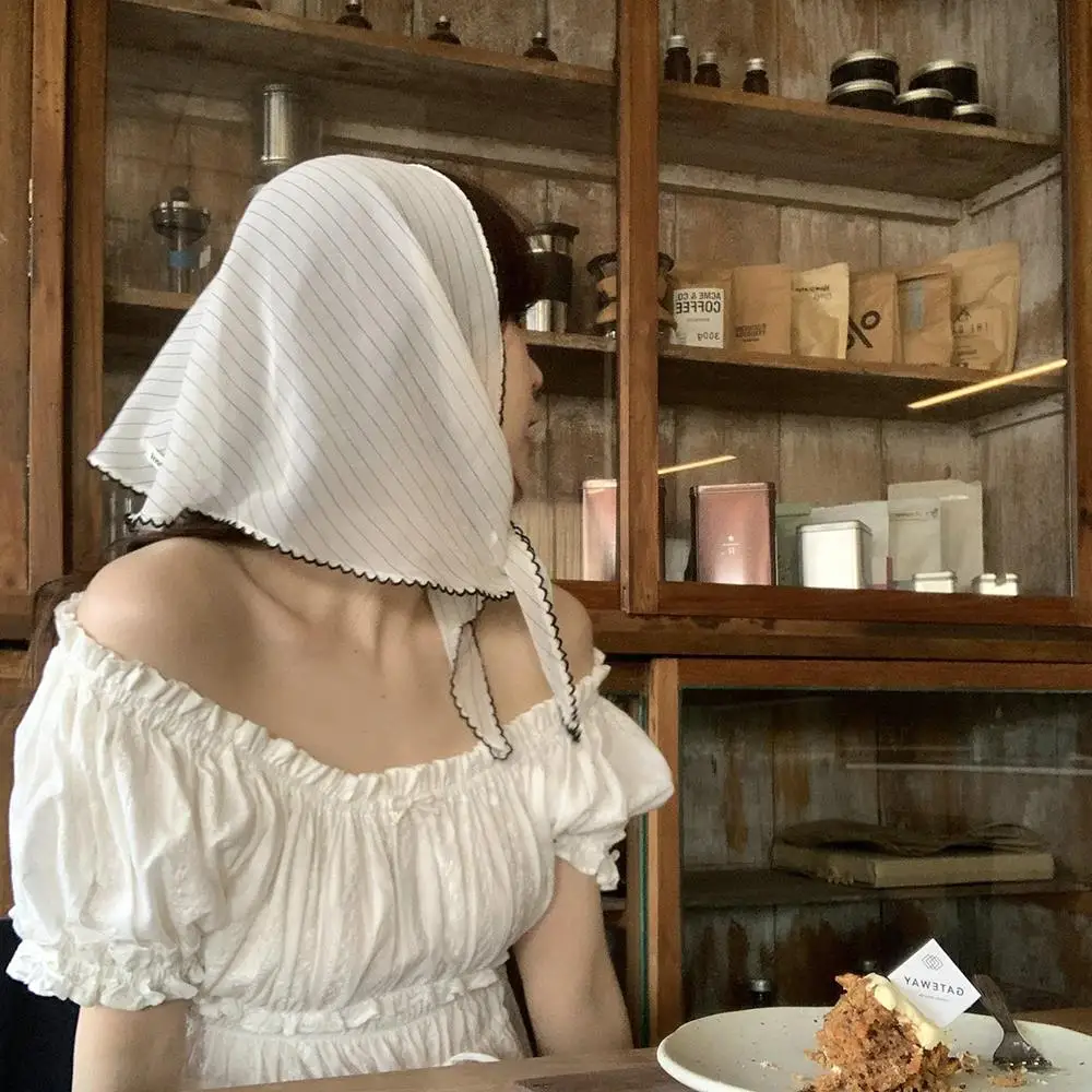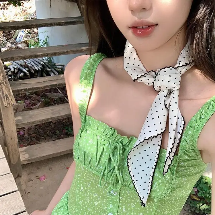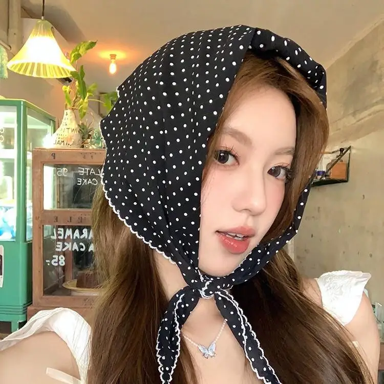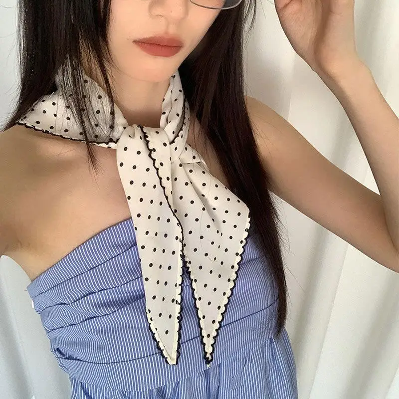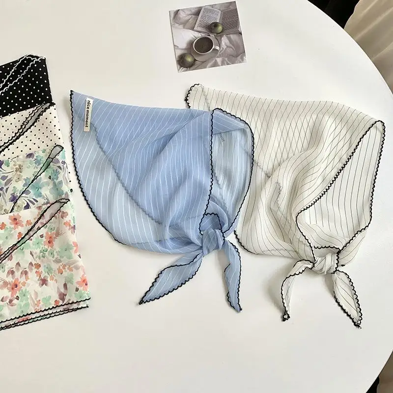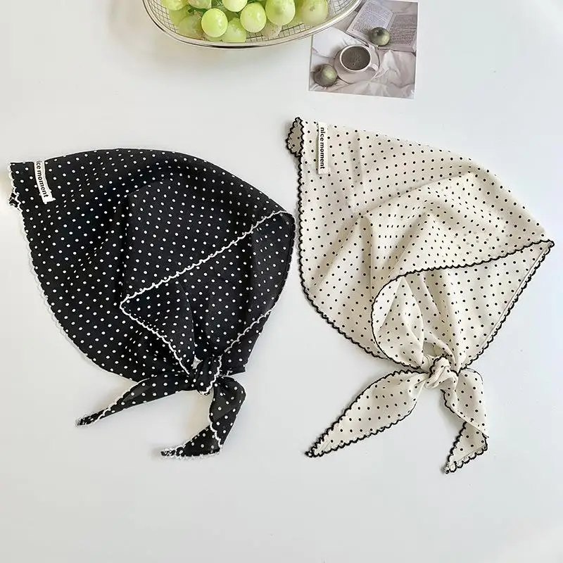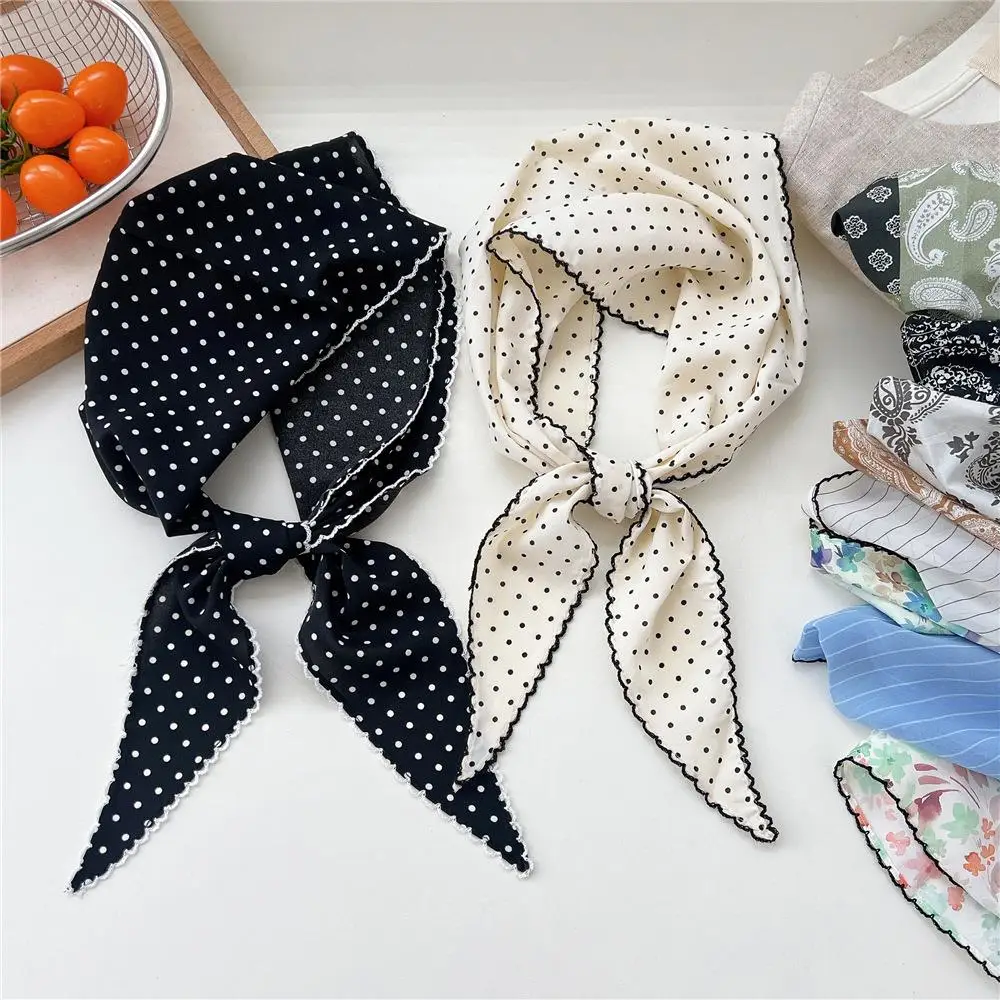 DIY Hair Ties Bandanas Hair Ribbon Polka Dot Striped Scarf Flower Printed Head Scarf Thin Triangle Hair Scarf Headband INS Style