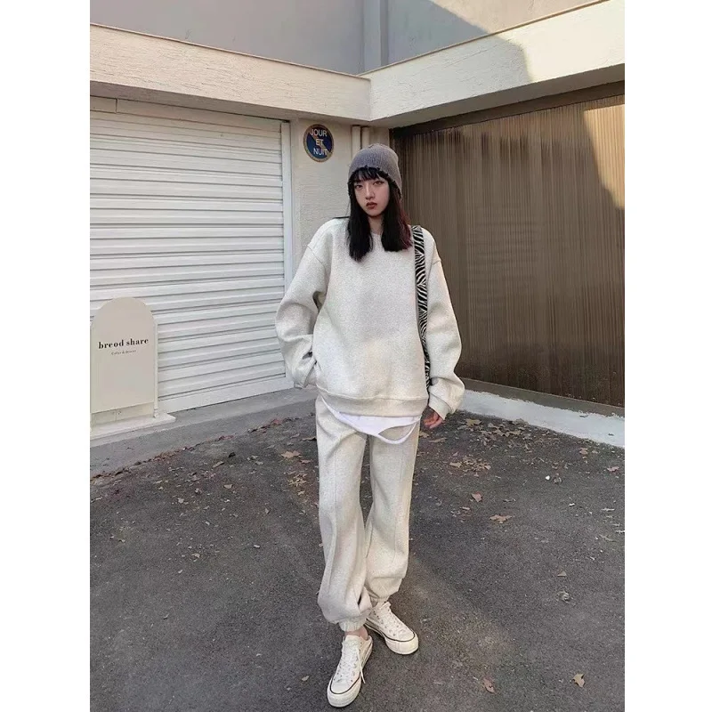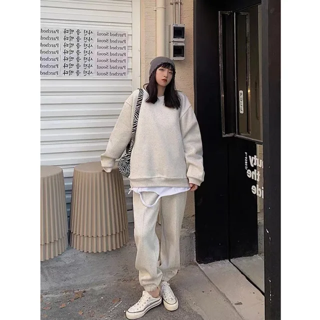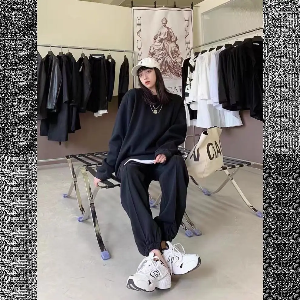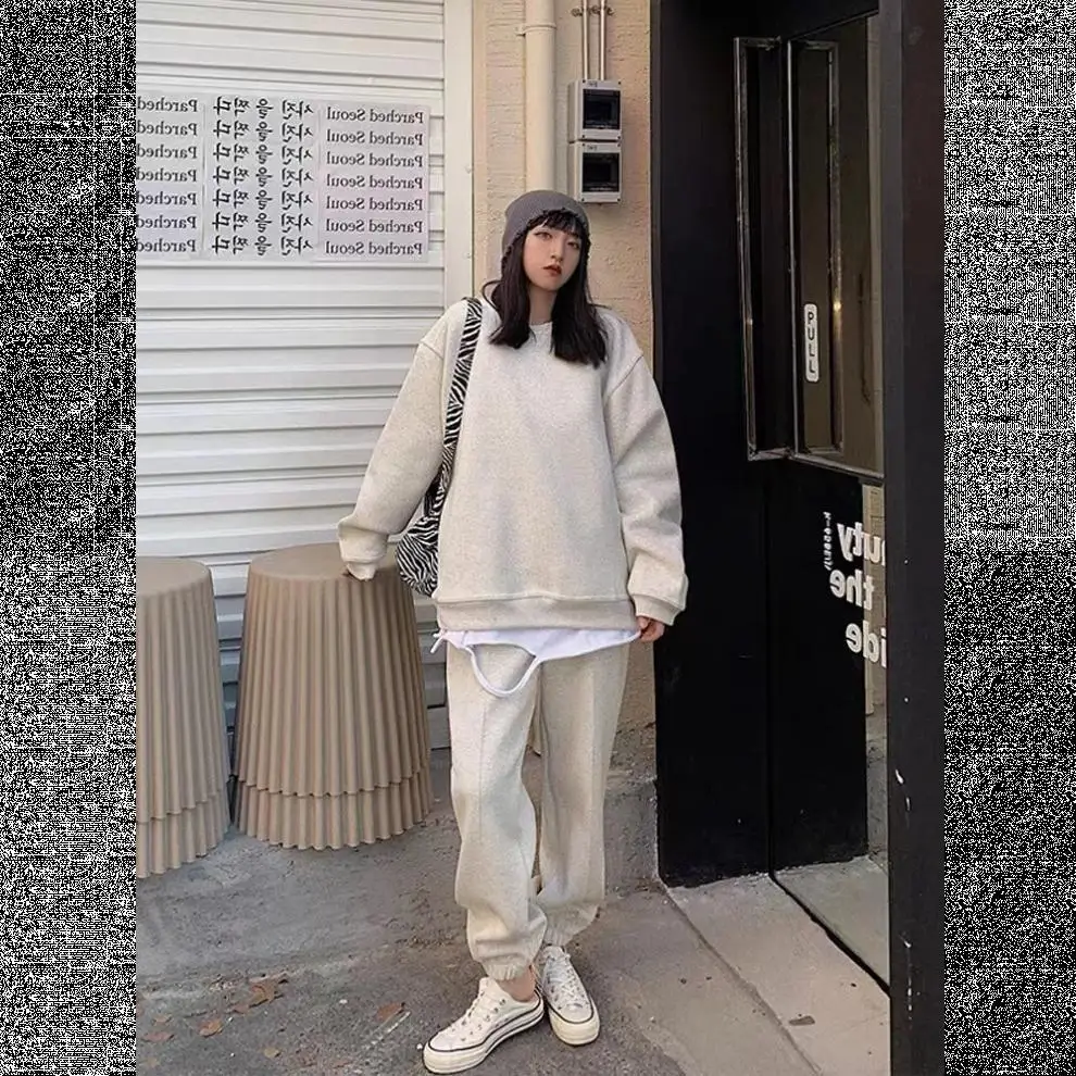 This cotton sweatshirt set embodies the 2025 autumn street style trend, perfect for fashion-forward individuals.