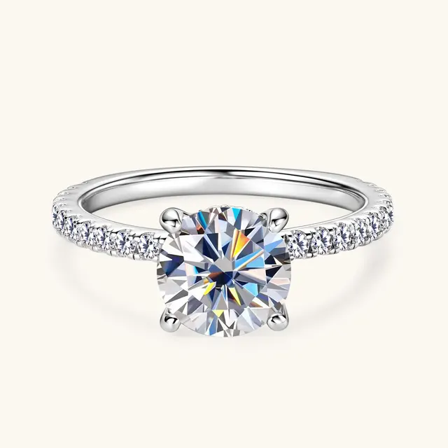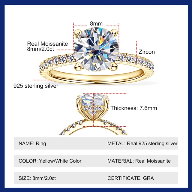 Sweetrain 2CT Moissanite Wedding Ring for Women 925 Sterling Silver Plated 18K Sparkling Bride Lab Diamond