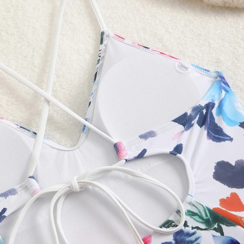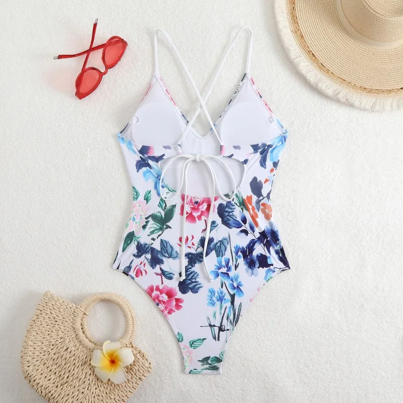 Swimming Suit for Women Sexy Floral One Piece Bodysuit 2025 Print Swimwear Summer Drawstring FashionFlower