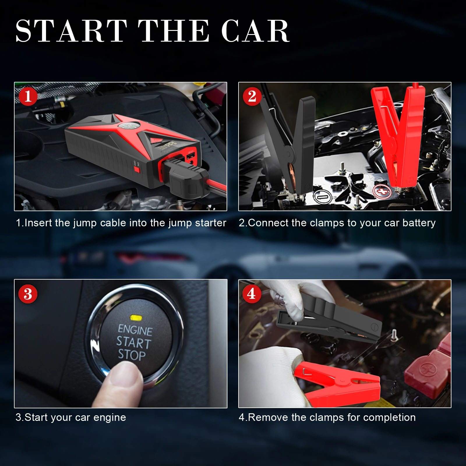 | Battery capacity | 20,000 mAh super capacitor car jump starter |