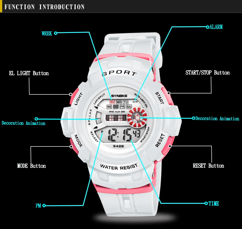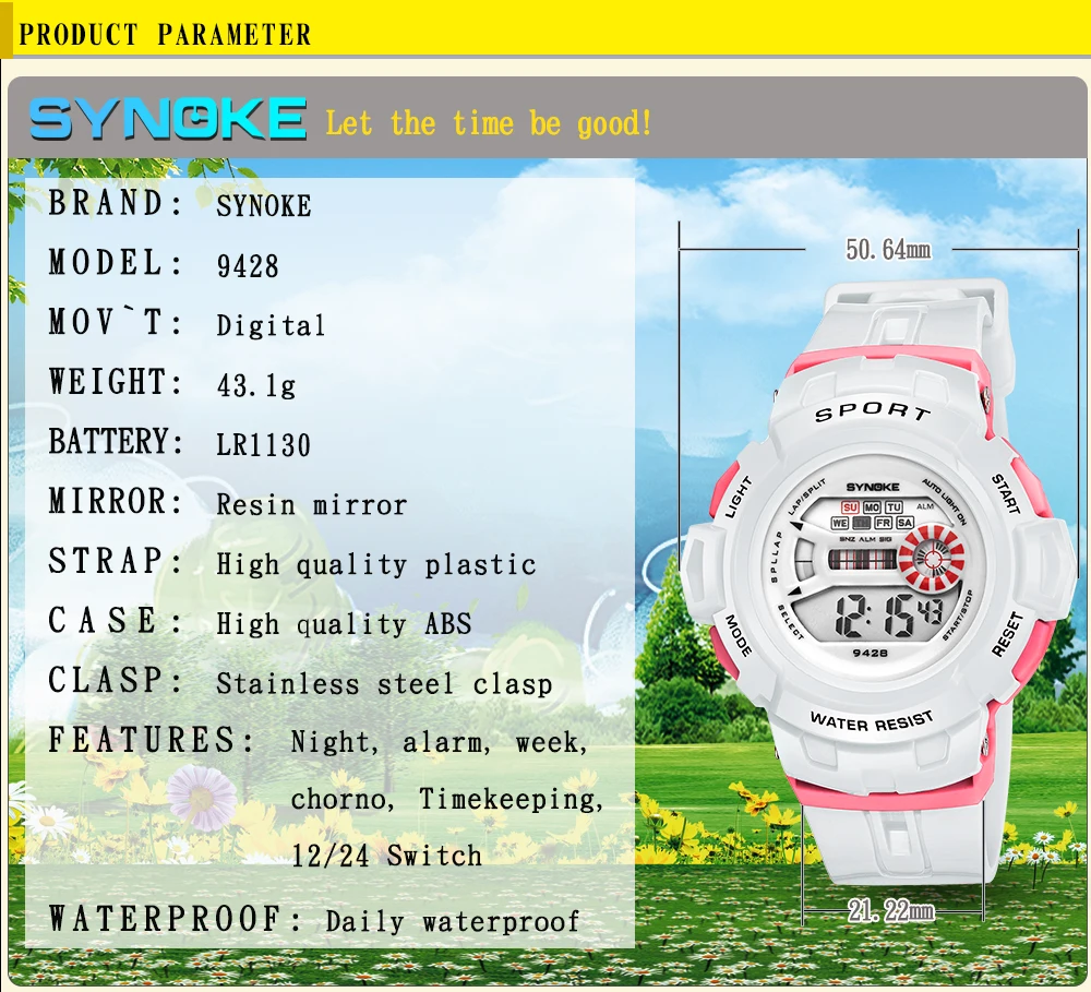 SYNOKE 9428 Watches Children Watch Digital Wristwatch Kids Boys Girs Students Clock Waterproof Sport