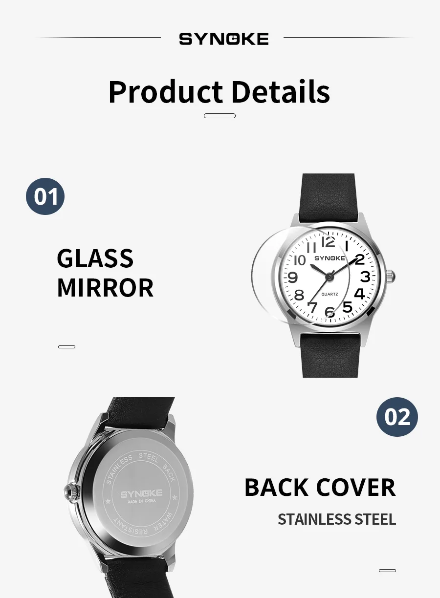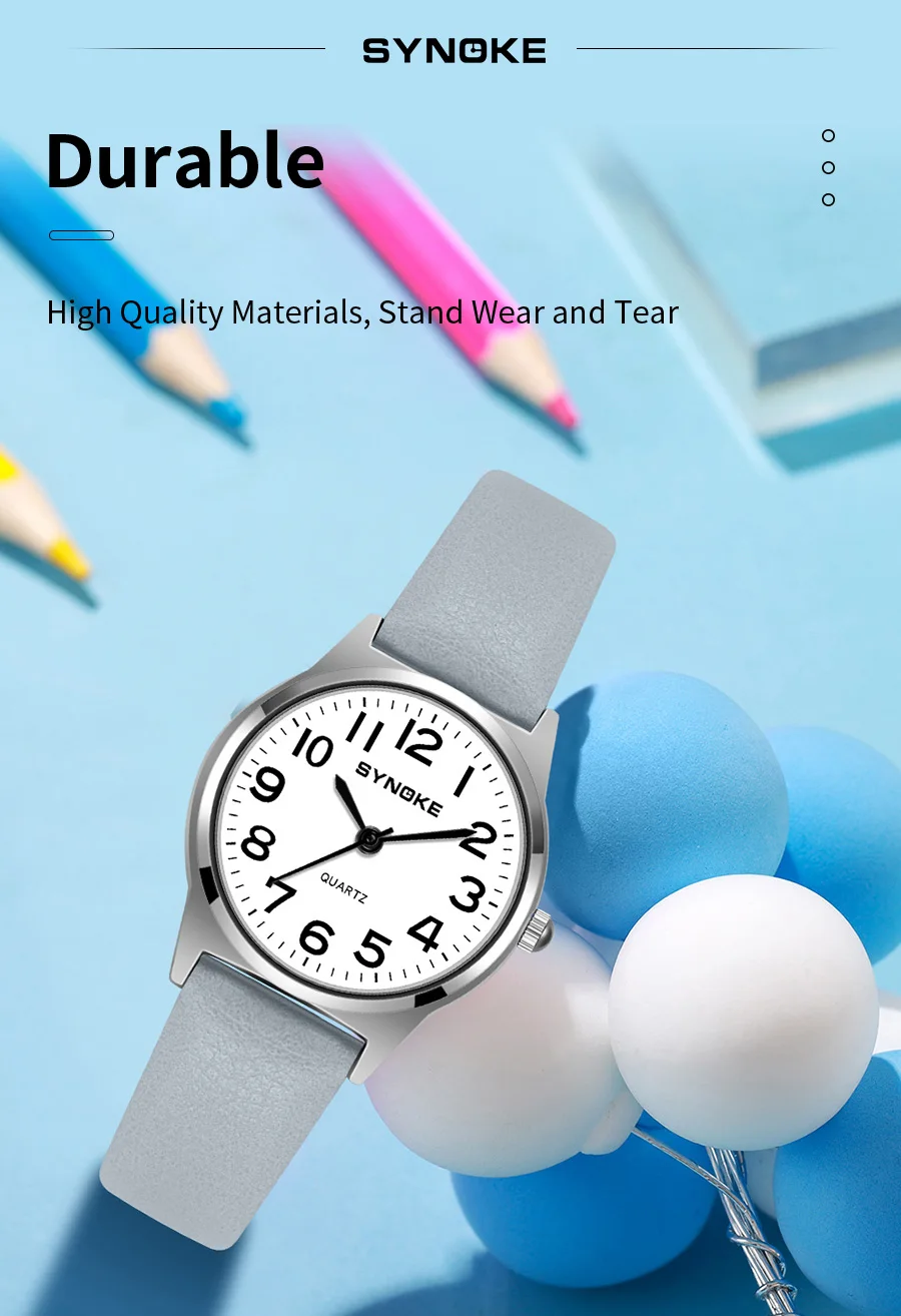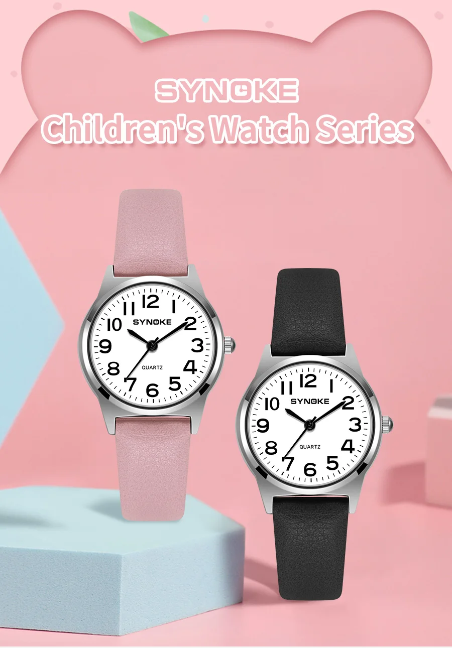 Children Watch Metal Case Leather Strap SYNOKE Brand Kids Watch Sport Quartz Watch Waterproof Watches For Student Boys Girls