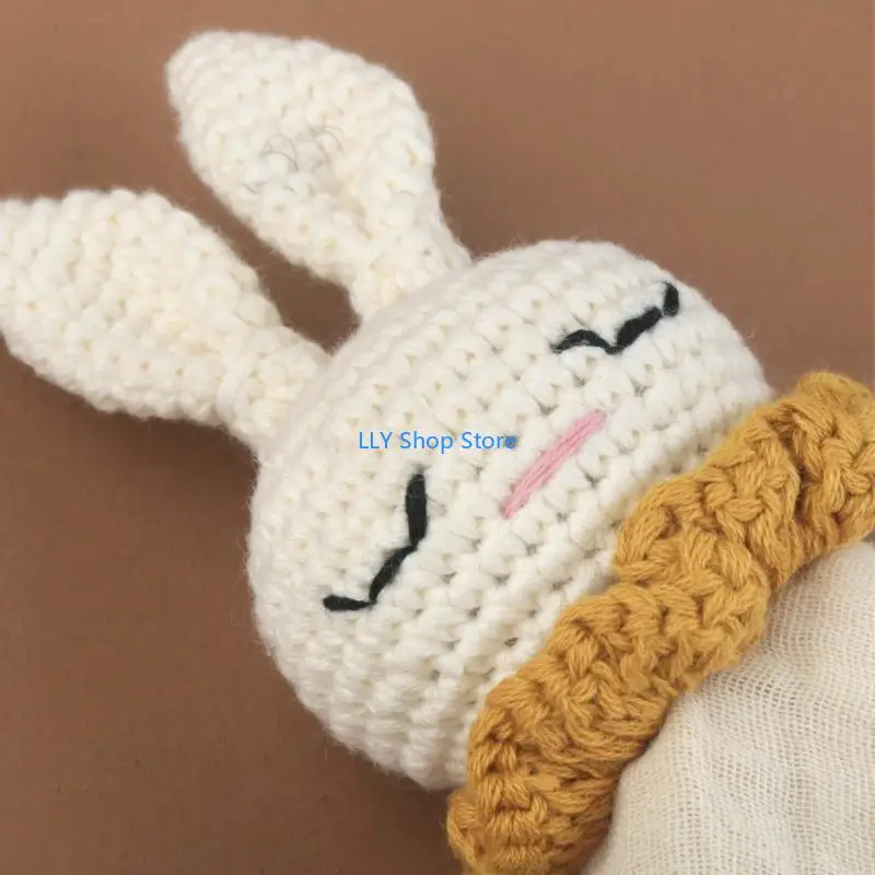 T8UD Crochet Rabbit Baby Nursing Bib Security Blanket for Boys Girl Breathable Soother Towel Infant Mood