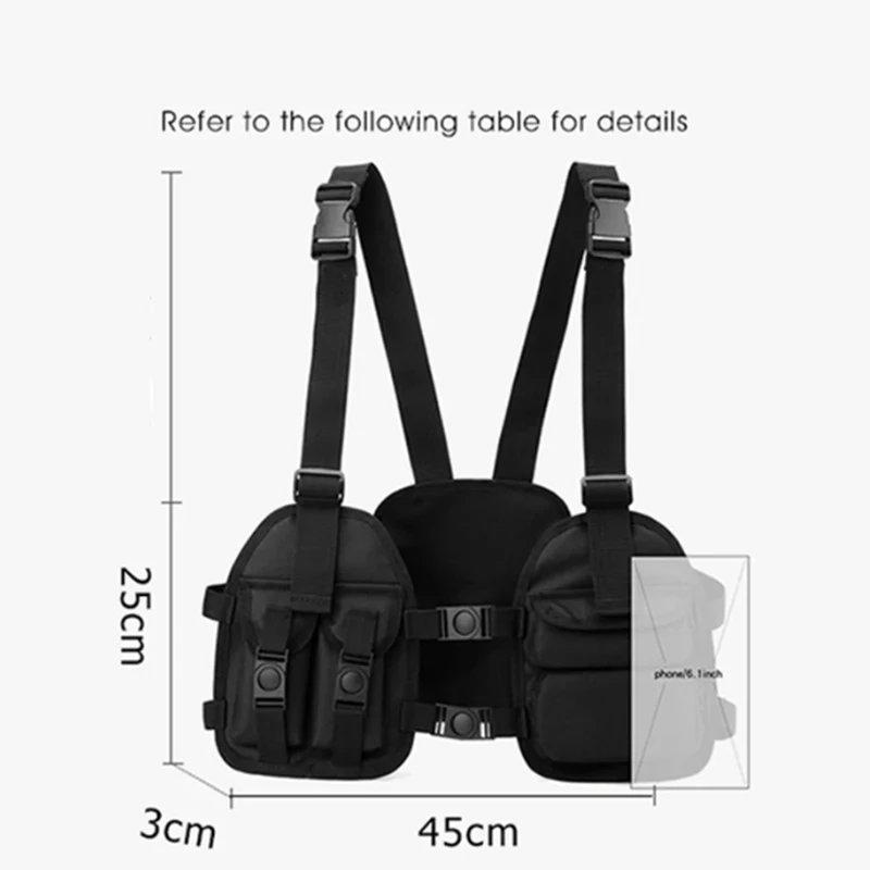 Style type: Chest pack Tactical package Tactical chest bag Vest bag Vest backpack