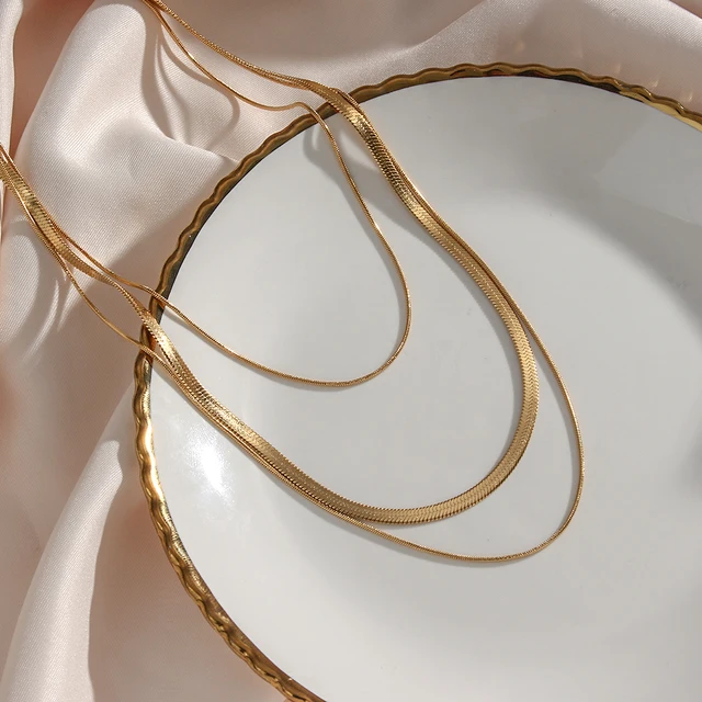 E.B.belle Simple Double-layer Rice bead Pendant Necklace 316L Stainless Steel Decoration 18K Gold Plated Jewelry
