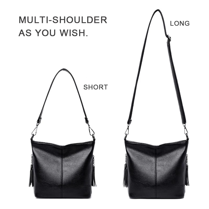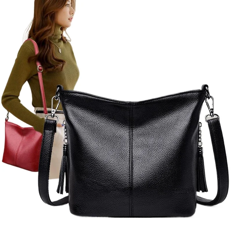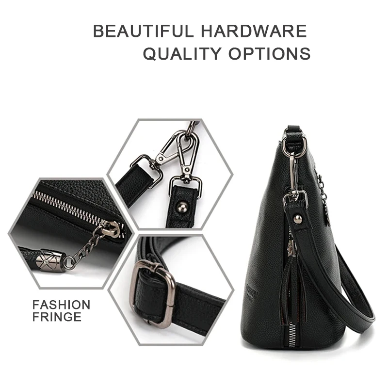 Tassel Leather Handbag Women Waterproof Leather Crossbody and Wallet Simple Luxury Tote Bag Designer