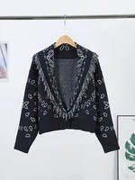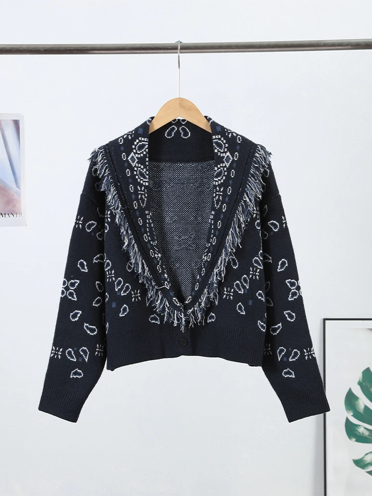 Feather Patchwork Knitted Cardigan Women Chic O-neck Long Sleeve Single-breasted Short Sweater 2025 Lady High Street Knitwear