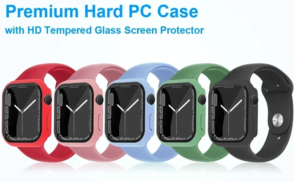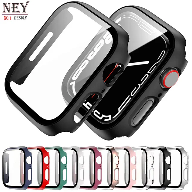 Tempered Glass+cover For Apple Watch Case 44mm 40mm 42mm 38mm PC bumper Screen Protector iWatch series 10 9 8 7 6 5 4 3 se 41mm 45mm 42mm 46mm