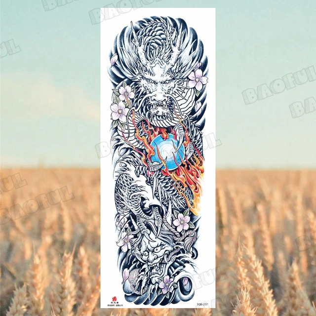 Temporary Tattoo Arm Sleeve For Men Women Realistic Lion Tiger Flower Halloween Ghost Pumpkin Fake Tattoo Sticker Thigh TatoosSize:47cm x 18cm