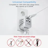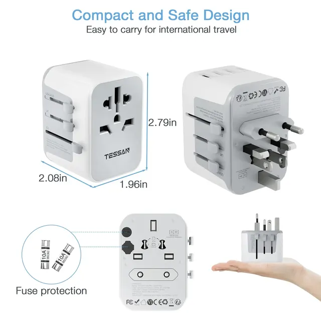 thanks to the size of 7.15 x 5.5 x 5.35 cm, this international power adapter is compact and portable. The all-in-one entrance concept meets the diverse requirements on your trip and saves you plenty of luggage space without having to take additional adapters or sockets. It is also a USB home charger, even when you are not on the go.