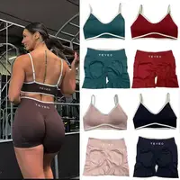 Solid Color Gym Bike Yoga Set Short Legging Cross Back Sport Bra 2pc Tracksuit Athletic Women Gym Suit Comprehensive Training Jo