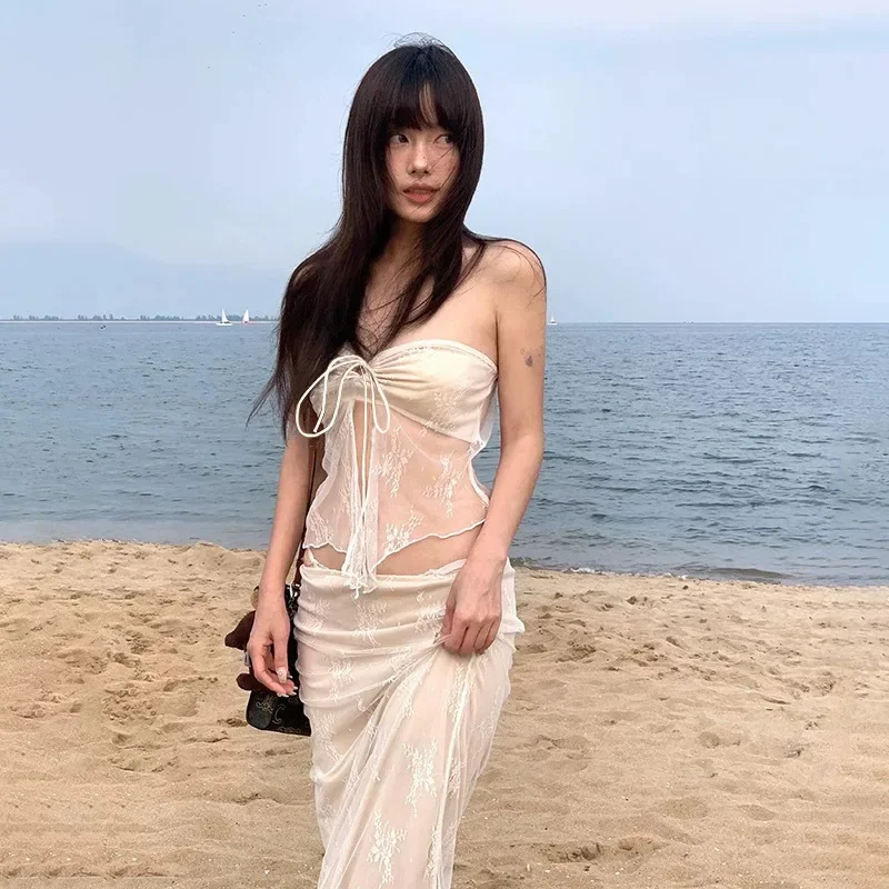 • Unique Design : This bikini set features a sexy lace tube-length split dress design, perfect for island holidays and hot springs.